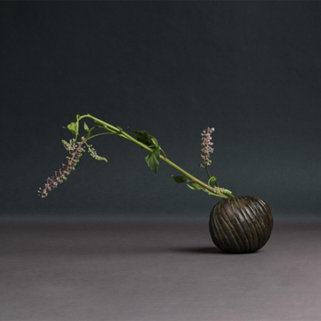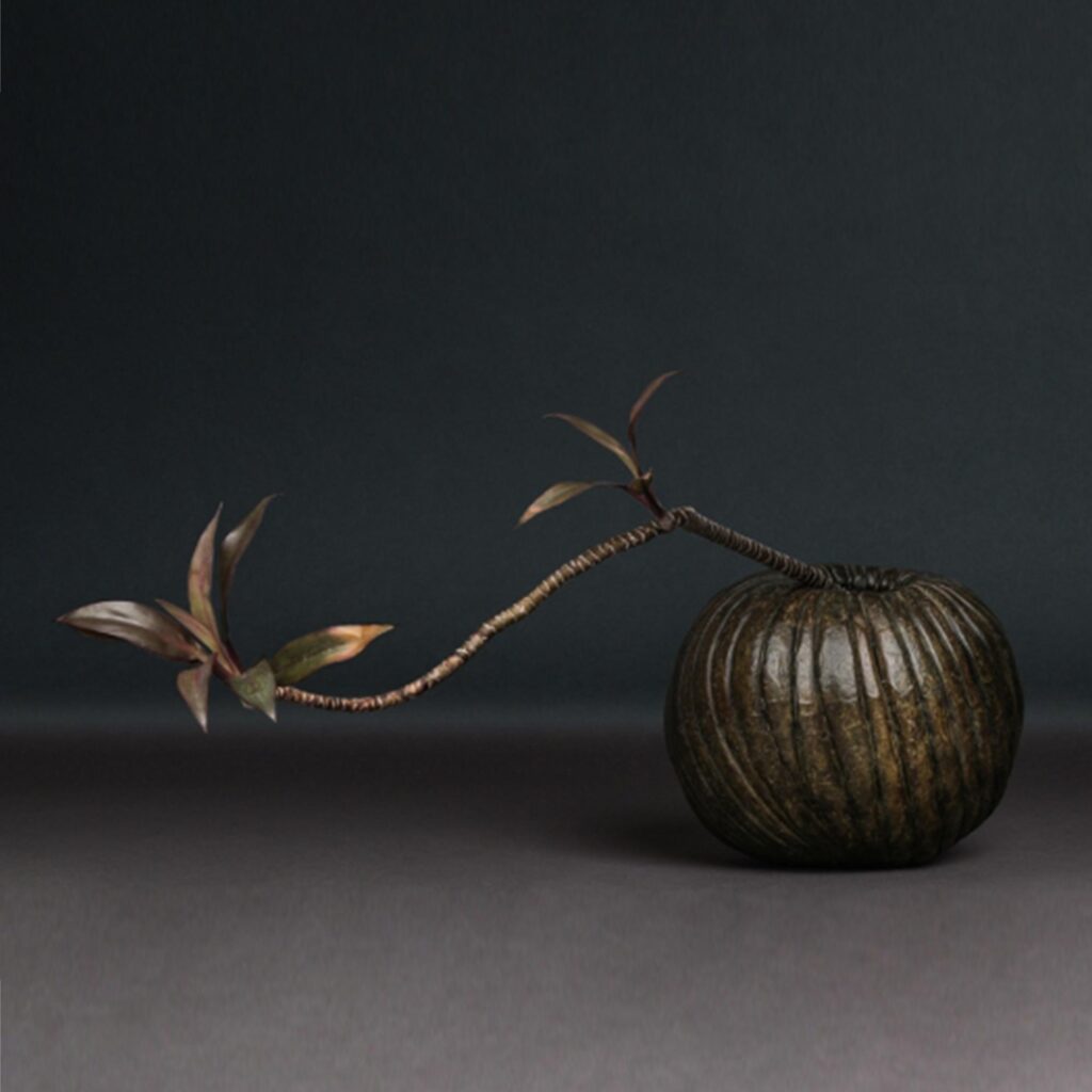 Like ancient fruit seeds or shells, with beautifully sculpted swirling forms, the Cockle vases are cast in bronze with a deep verdigris patina.