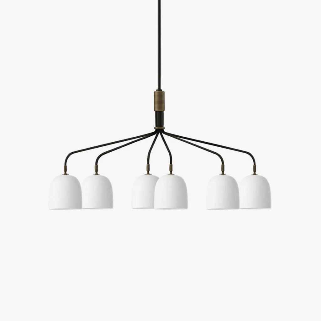 A grand gesture to grace public and private spaces, the Howard Chandelier’s warmth, strength and subtlety is Space Copenhagen’s distinctly Scandinavian celebration of New York’s industrial palette. Abundant with material and atmospheric references from the SoHo location of the Howard Hotel, for which they were originally designed, they exude a warm, tactile feel. 'Octopus arms’ provide a modern and sophisticated shape, while the gunmetal brass shades with a brushed brass interior lend an industrial and functional aesthetic. For a more gentle effect, a bone china shade – providing softer, more glowing ambient light – can also be selected. The carefully crafted Howard Chandelier is the centrepiece of the Howard Collection which can be combined to create a highly coherent atmosphere in the home, hotel or boardroom.