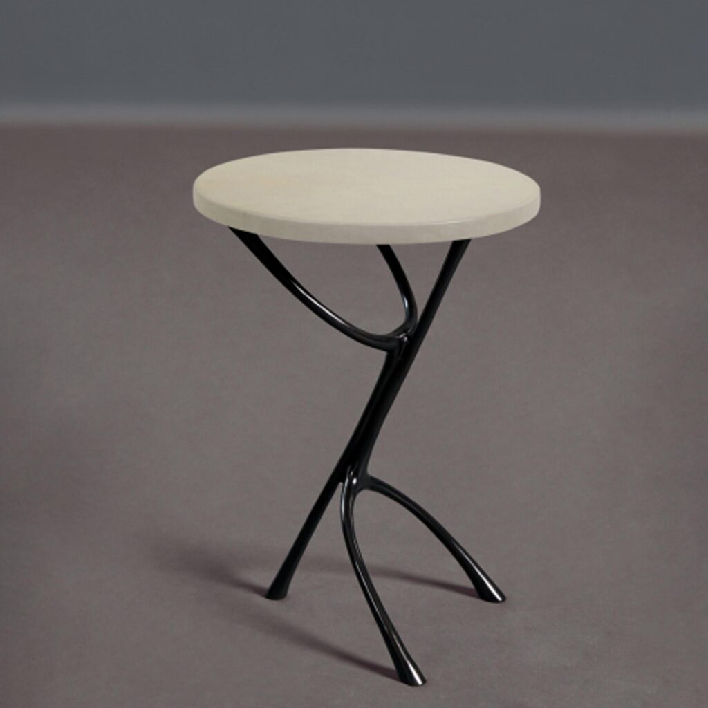 Any great drinks table should have beautiful sensuous legs and a top that mystifies and asks to be touched. This elegant side table has a parchment top raised on cast bronze legs.