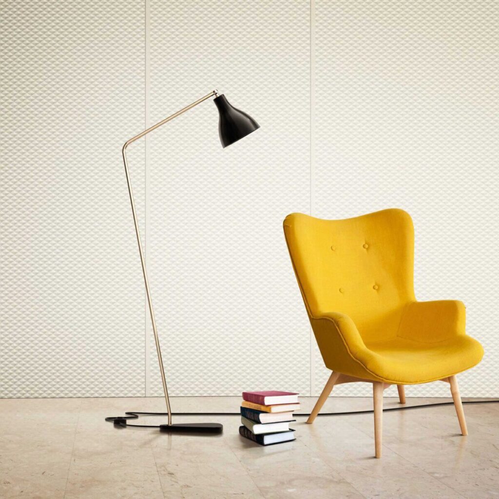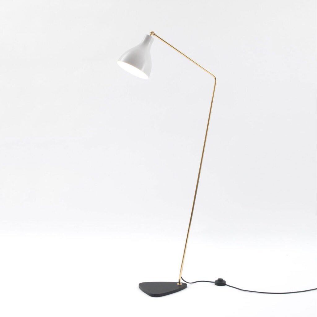 Based on the popular Arc floor lamp. The Aguilar features a classic rectangular base and curved antenae with a cupped metal shade.