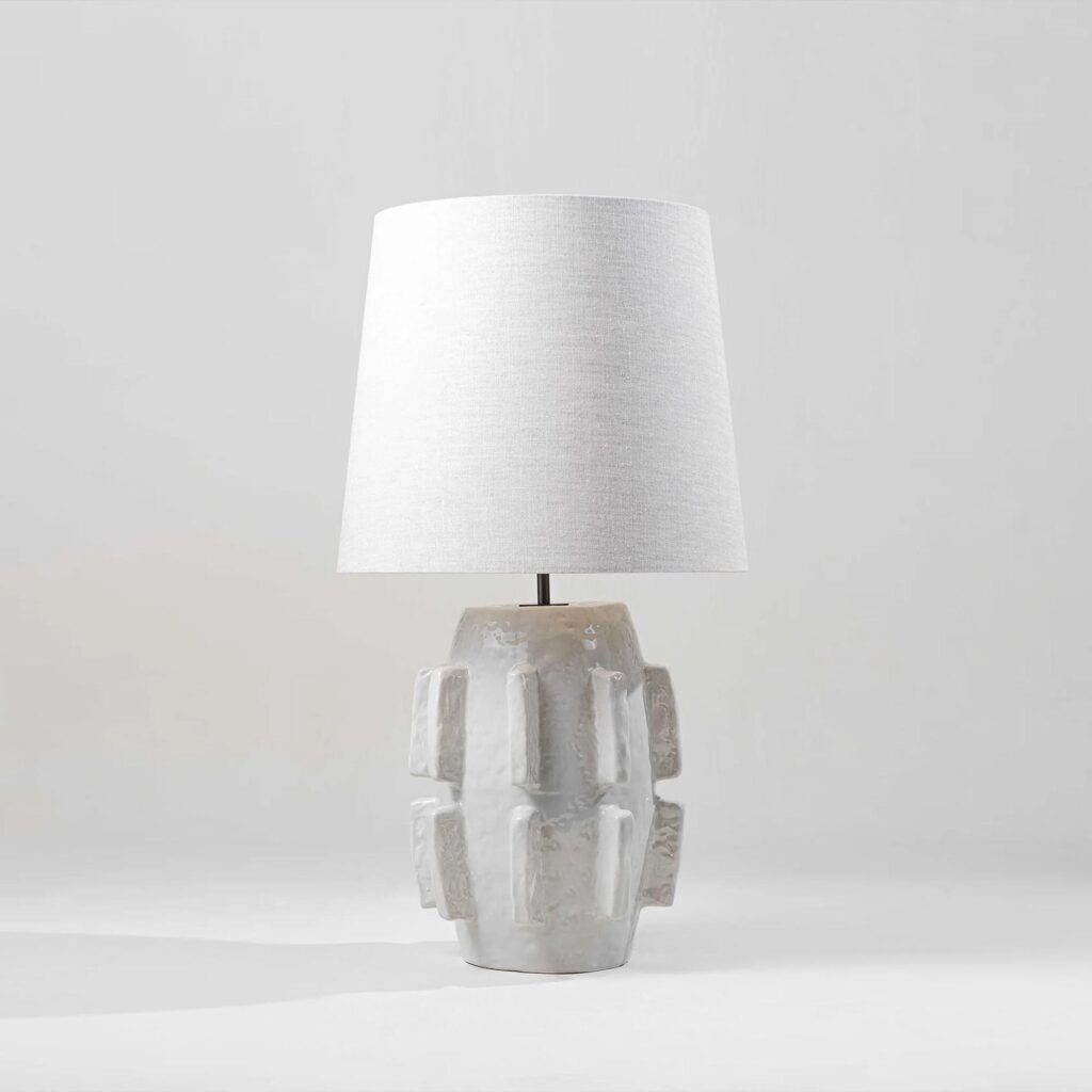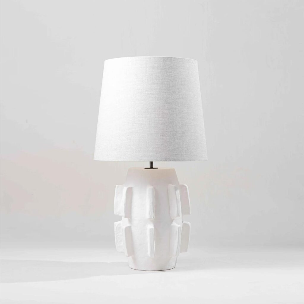 The Barbara Lamp pays homage to the modernist sculptures of Barbara Hepworth. The piece was initially hand-sculpted and textured in clay before being produced in cast composite and finished with a matte surface in the Porta Romana workshop.