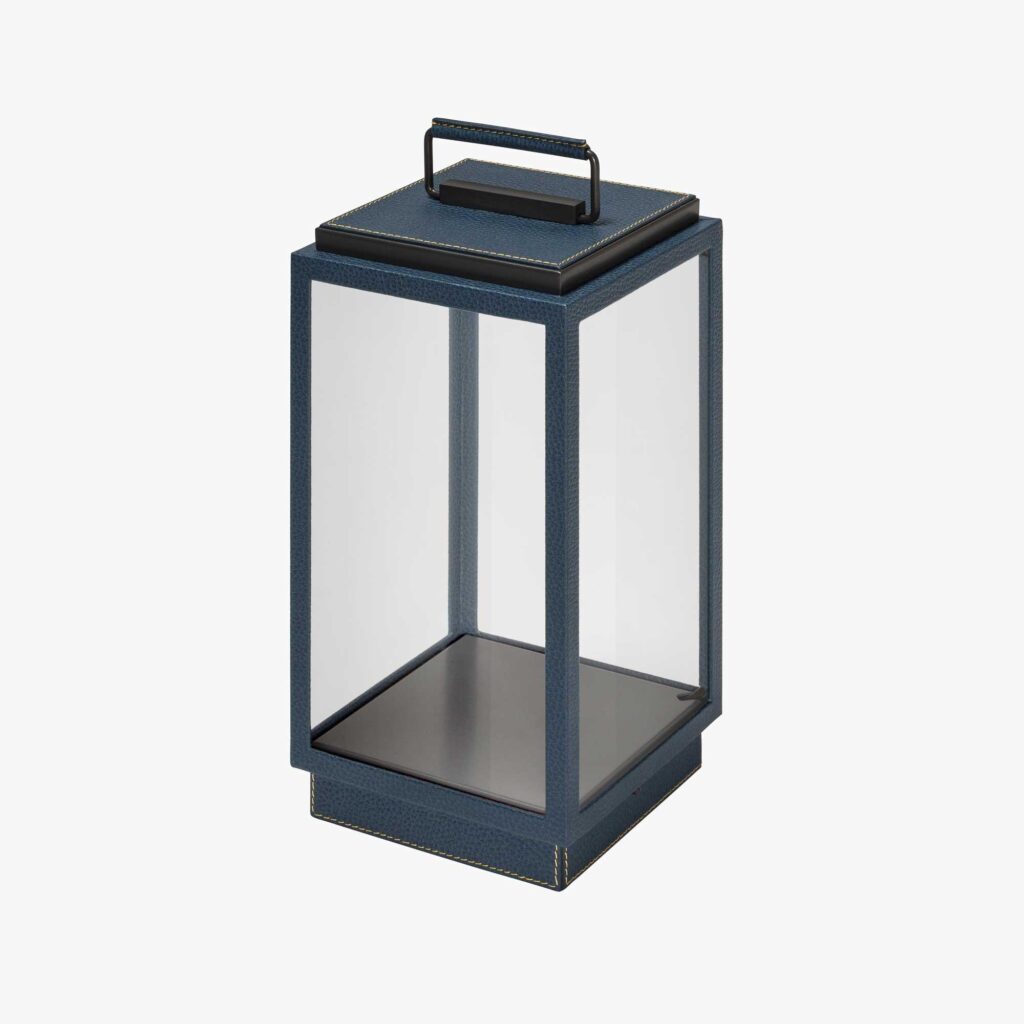 The Blakes Leather Table Lamp by TEKNA and Giobgnara is an eclectic leather-covered brass table lamp with clear glass inserts. Due to its minimal and portable light design, this lamp is perfectly fit for any kind of environment, looking brilliant both indoors and outdoors. Supplied with rechargeable Li-ion battery able to last up to 5 hours after full recharge.