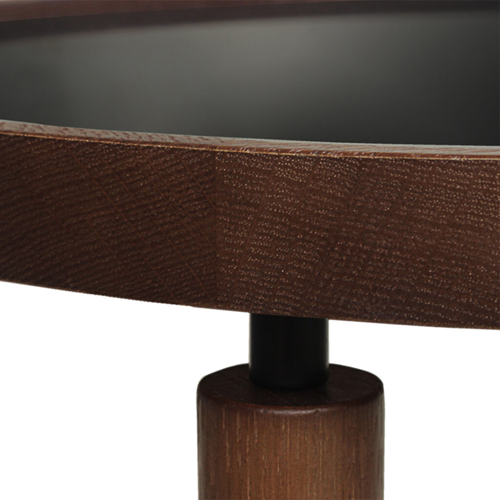 A small sleek tubular bedside table in pebble-grain stitched Black Leather. The rails and feet are in a contrasting Aged Brass. Brass Wrap is a hand applied finished which is moulded and beaten by hand. As a result the finish is unique in both appearance and texture.