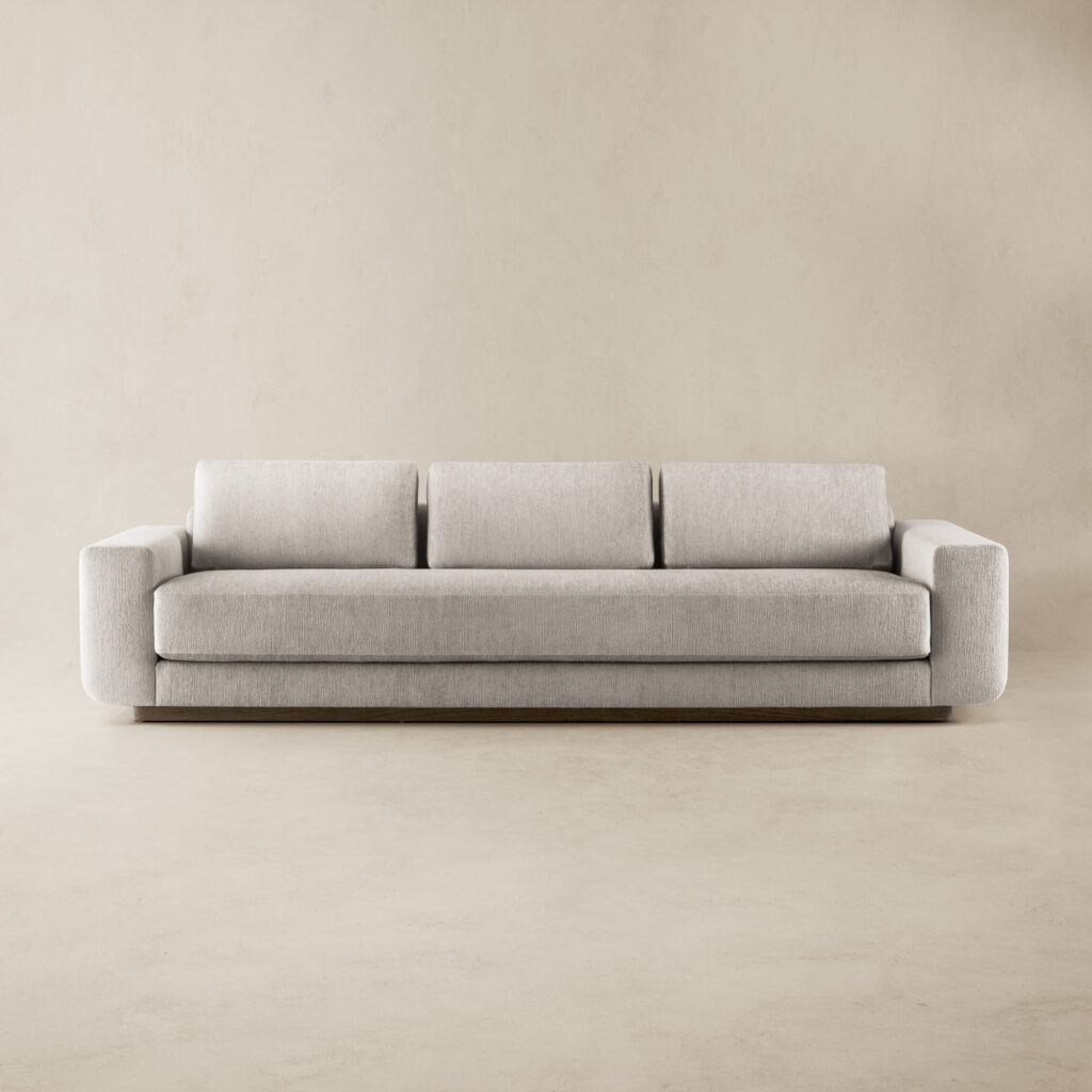 The Campau Sofa by Joseph Jeup pairs generous comfort with clean, tailored lines and sculpted wood accents. A customizable, high-design piece that elevates modern living—available at South Hill Home, Toronto.