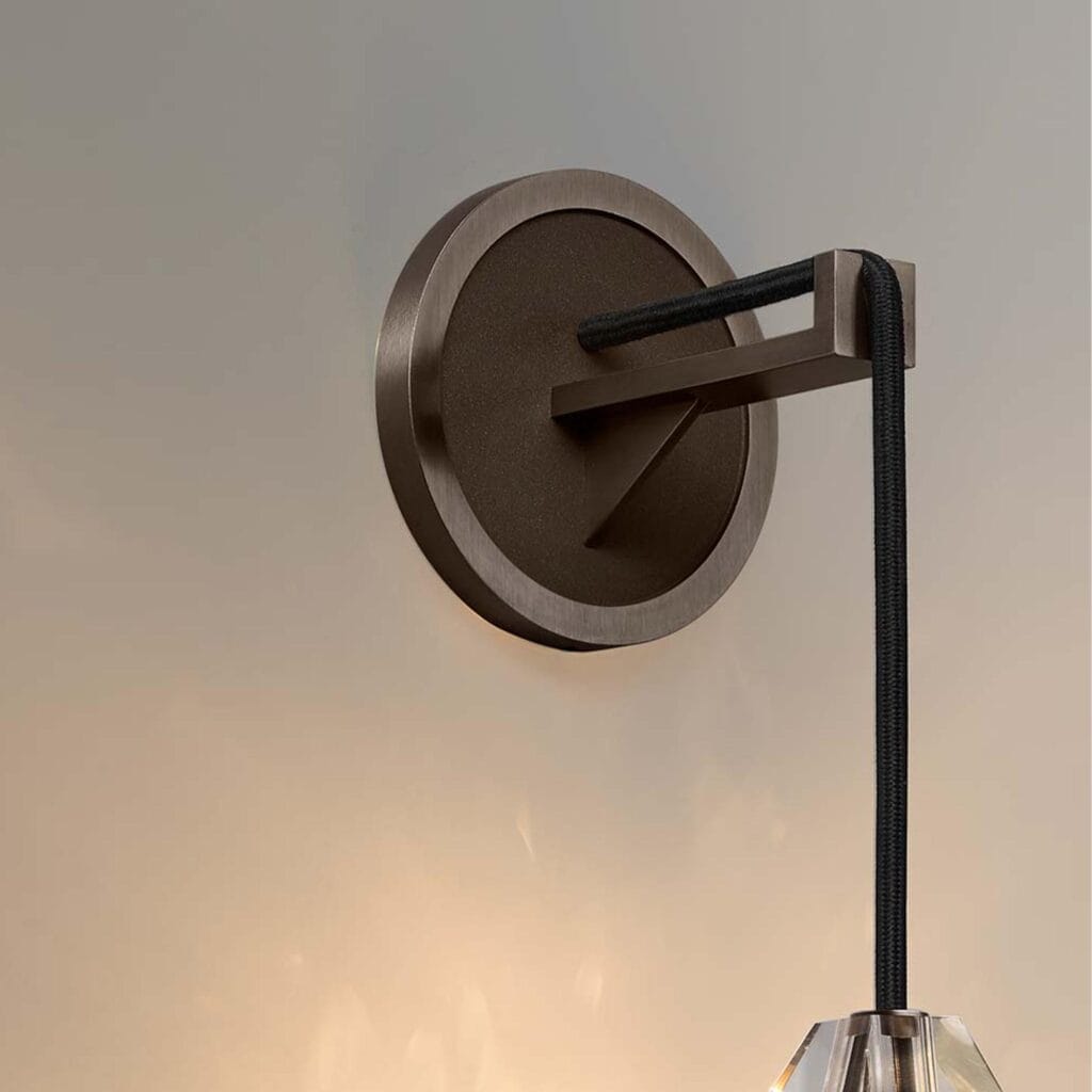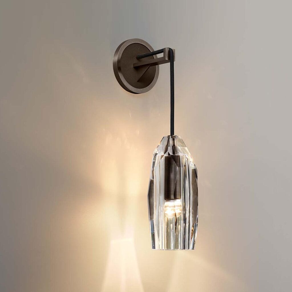 The Chatelet Sconce is machined from solid brass. All parts are hand polished and patina’d. The lead crystal shade is hand carved and polished.