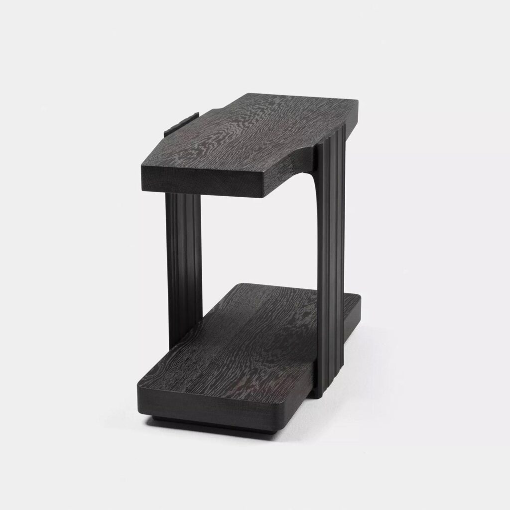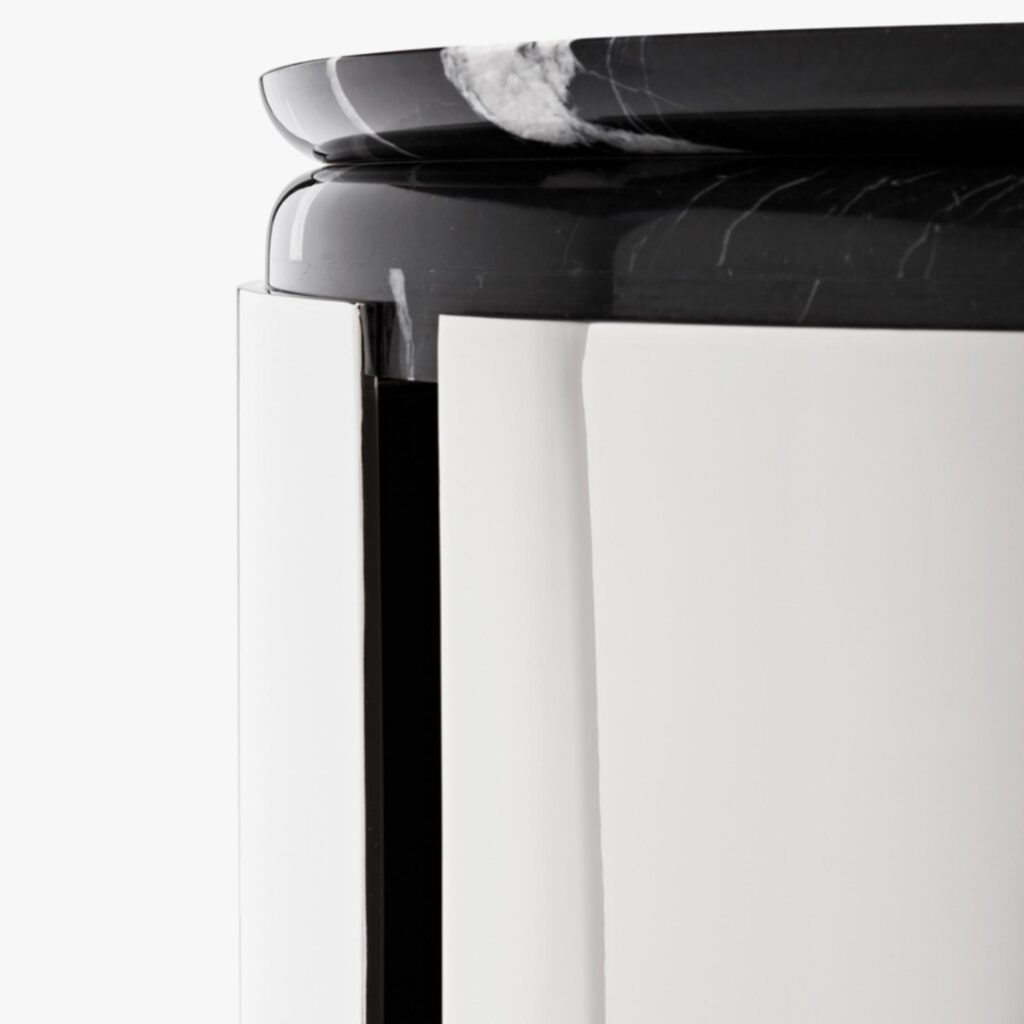 The Cirque Cocktail Table by Powell & Bonnell is a cylindrical steel cocktail table with inset stone top available in various options of natural stone, caesarstone and other solid surfaces.