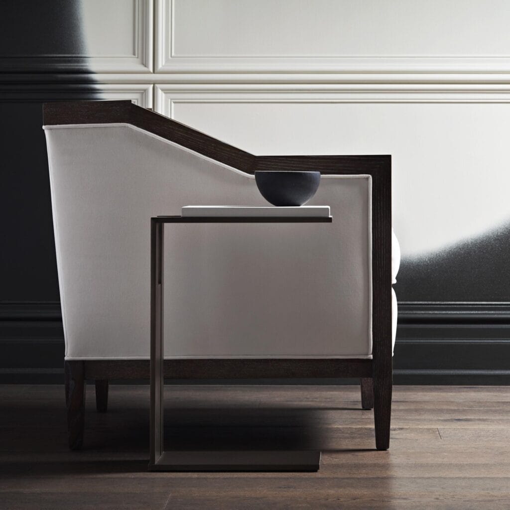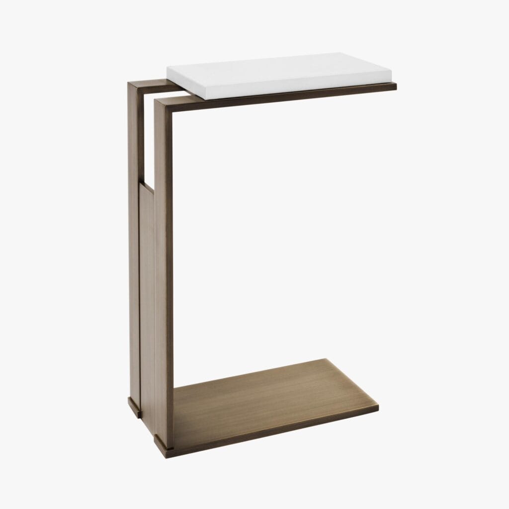 Inspired equally by Saarinen and Brancusi, the beautiful Dakota Table has become a classic. Offered here with an elegant, oval Vellum top in High Gloss Cloudy Brown Vellum. It is paired with a standard size base in either shimmering Polished Nickel, subtle Antiqued Nickel, a moody Dark Bronze or warm Brass. Bases are hand beaten and therefore unique in appearance.