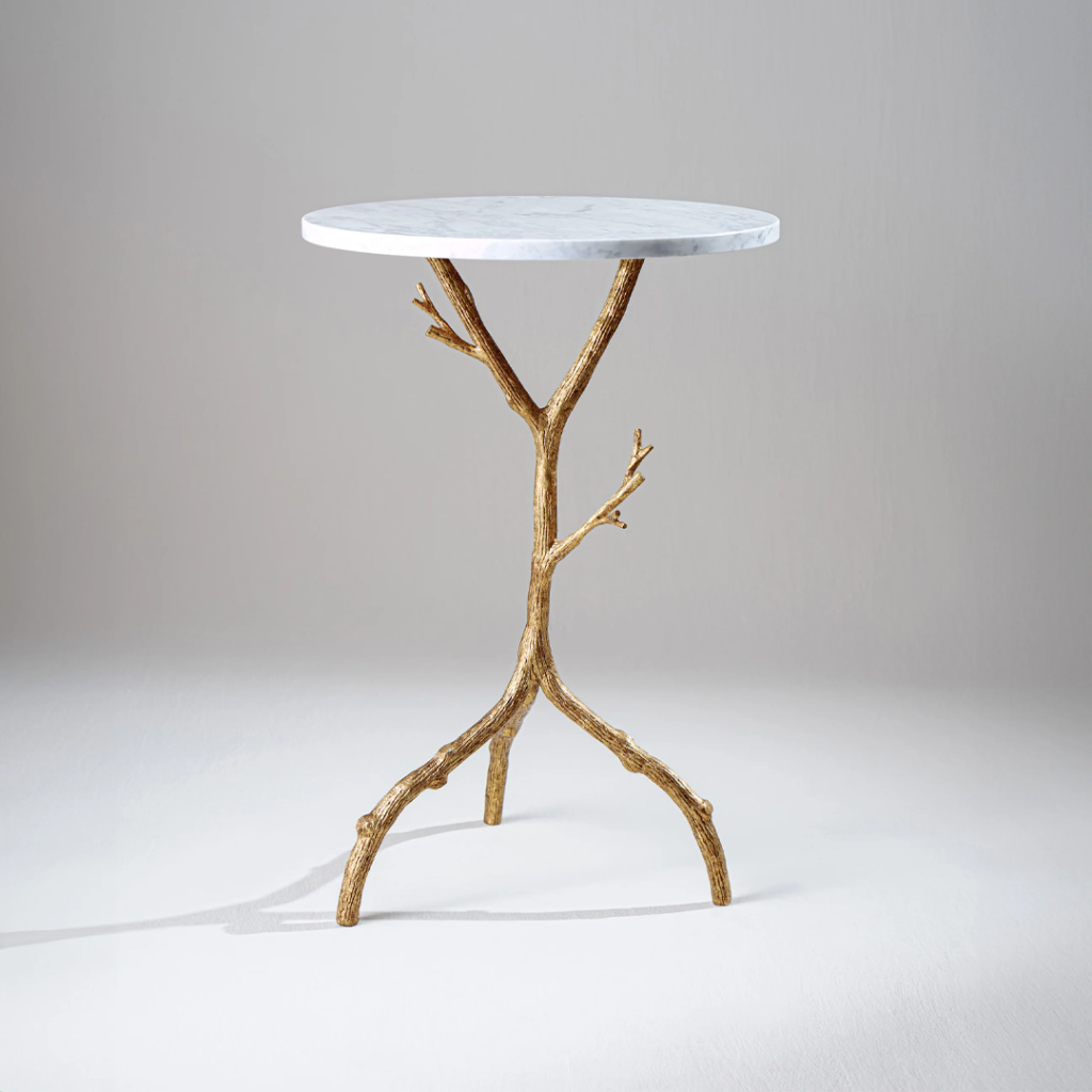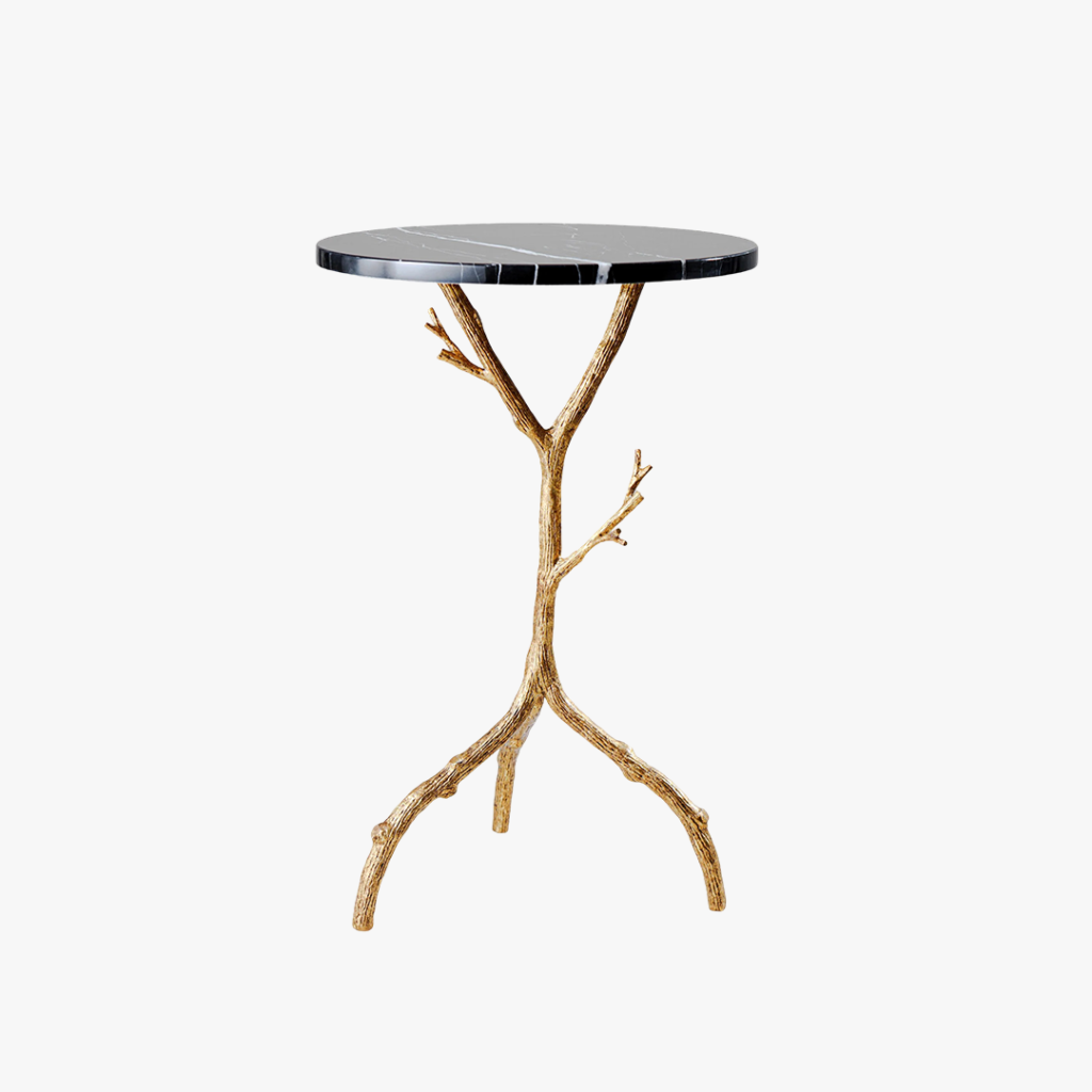 The Forest side table emulates the look and feel of a twisting twig with three curved feet with a choice of stone top.