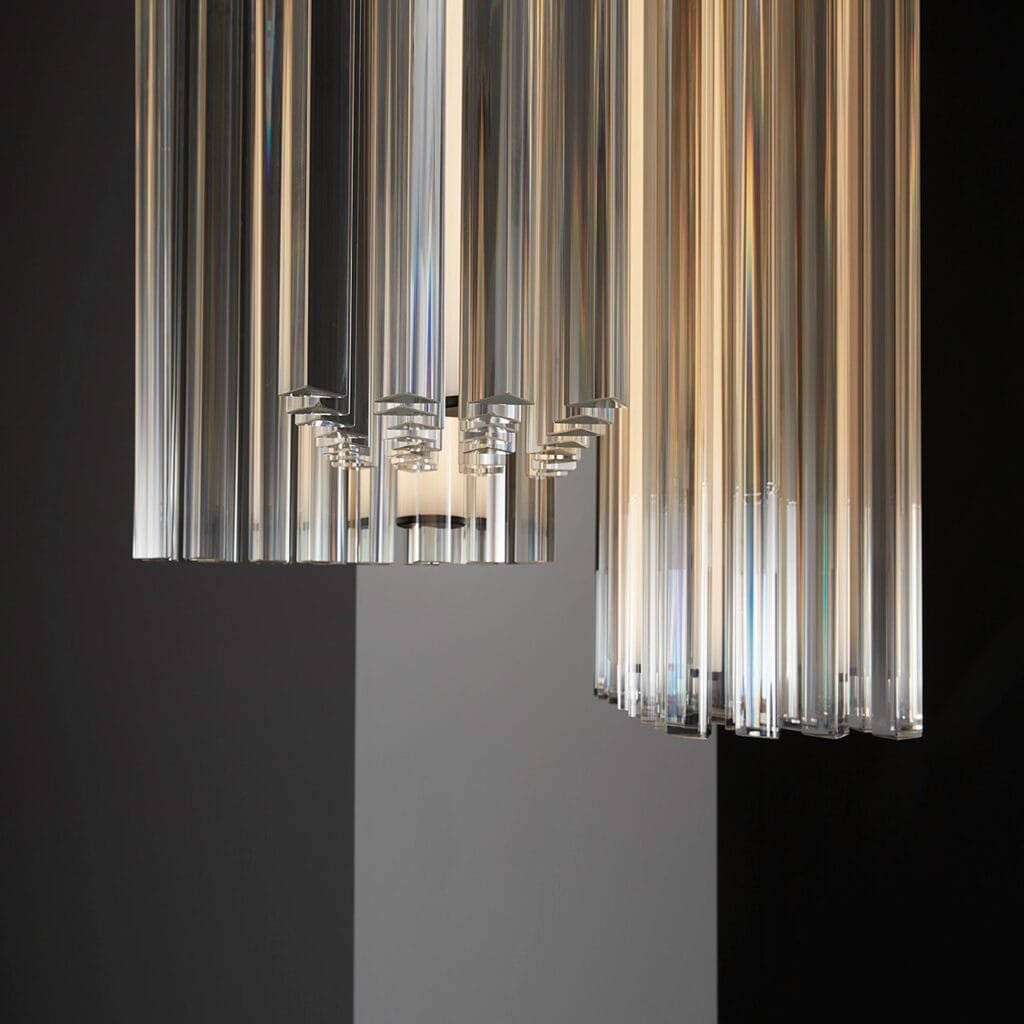 Grace Composition in a matte black metal structure with steel cables, composed of crystal triangular trihedrons.