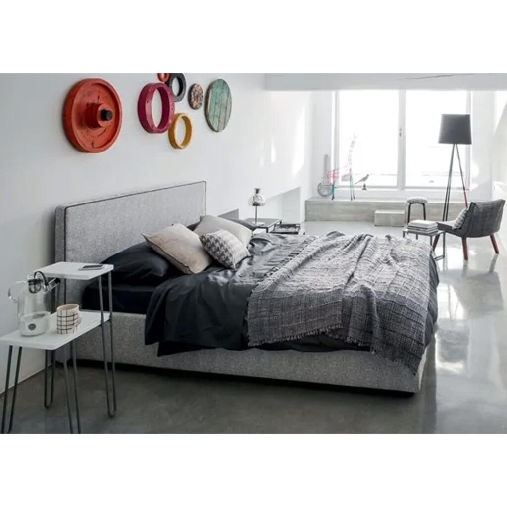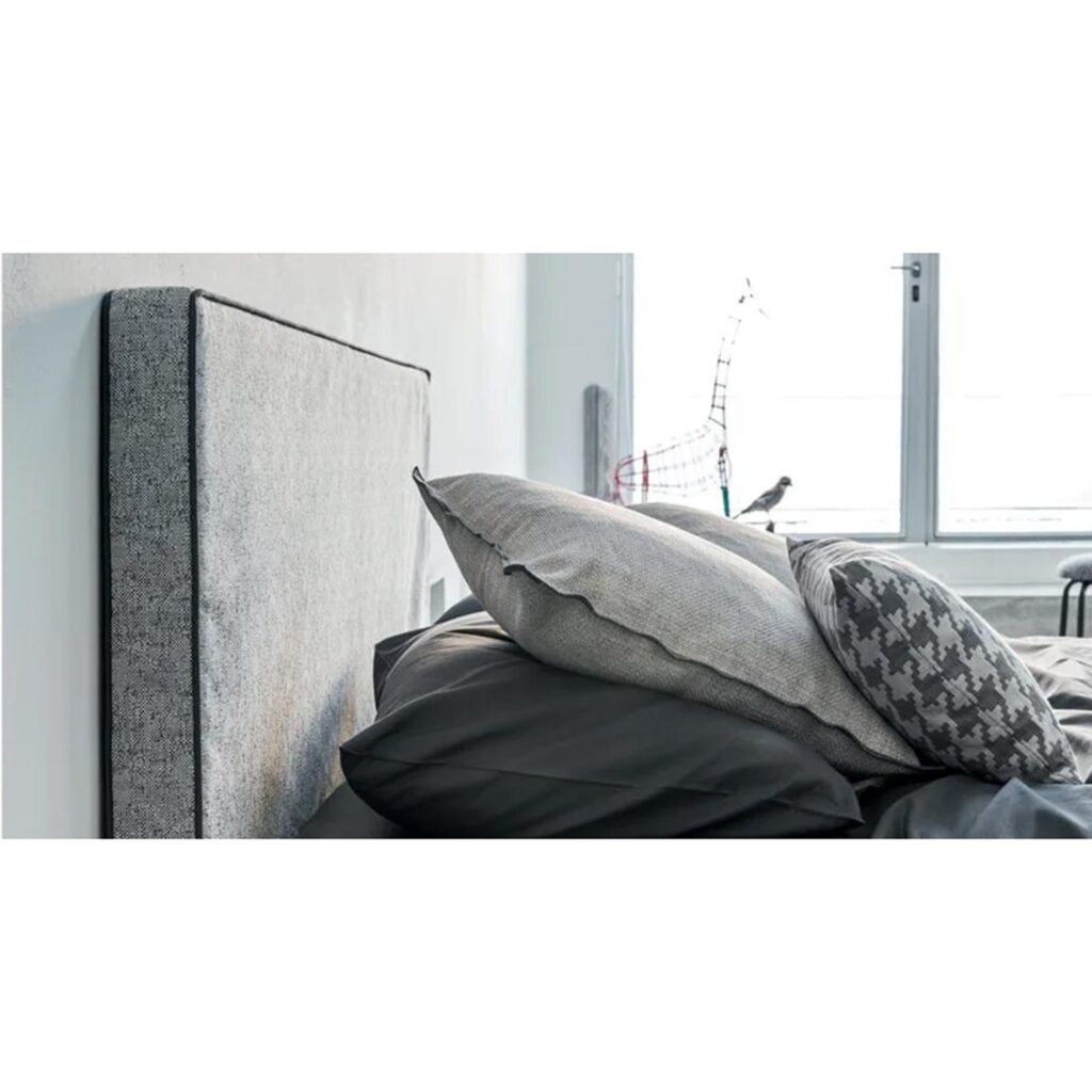 Linea is an upholstered knock-down bed and s the ideal choice to give a touch of elegance and charm to a space dedicated to comfort. Upholstered bed with piping or sew/cut seam in contrasting colours or tone-on-tone, with a minimal and geometric shape with fabric or eco-friendly leather upholstery and solid wood feet in natural walnut, black, white, grey, ocean or dove-grey.