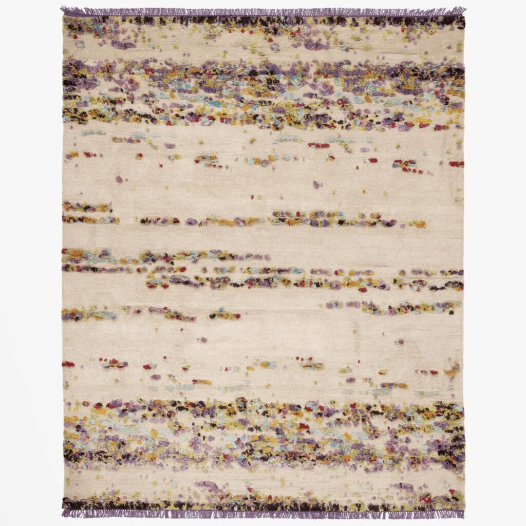 Softness, serenity, calm, silence... Atelier Tortil’s new carpet collection invites you on a walk through the Finnish countryside, with its landscapes of rock, moss, granite, flowers and lichen... and its peaceful aquatic expanses. Hand-knotted with a variety of wools, Finland offers a world of soft optical vibrations, like the horizon where sky and water merge. The different knotting techniques, the range of yarns and the delicate colours selected have produced these abstract and organic patterns that, with impressionist strokes, evoke the beauties of nature. The particular charm of the Scandinavian seasons pervades this collection through subtle gradations in apparent monochrome, ideal for expressing all the nuances of light, from diaphanous white.