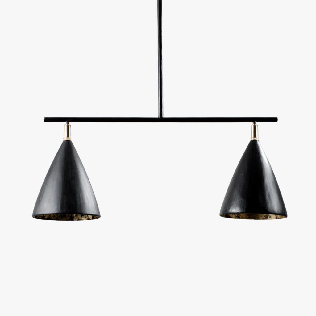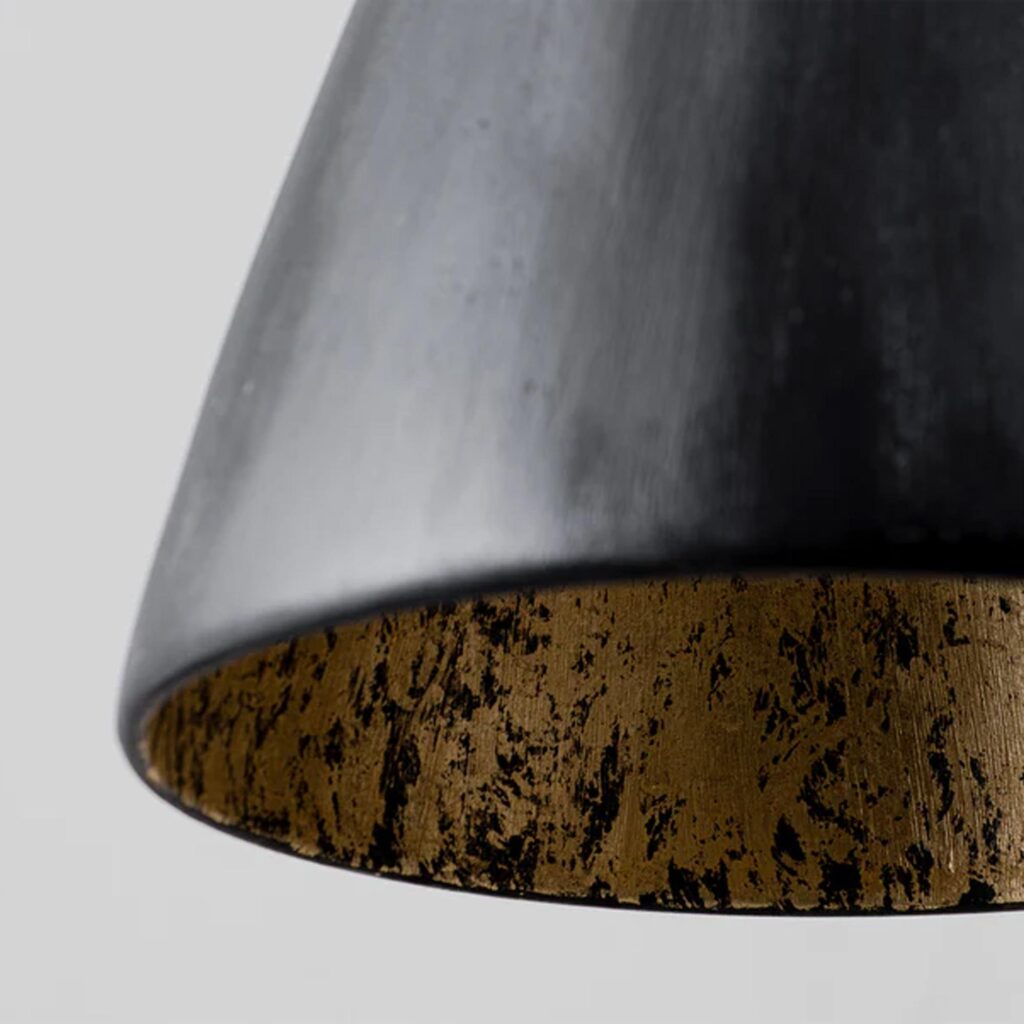 Boasting a sleek cone shape with brass detailing, the Matilda family is simple and elegant, available as both a wall and ceiling light. The cup is etched with gold providing a soft golden light. Each piece is cast and carefully finished by hand in our painting studio.