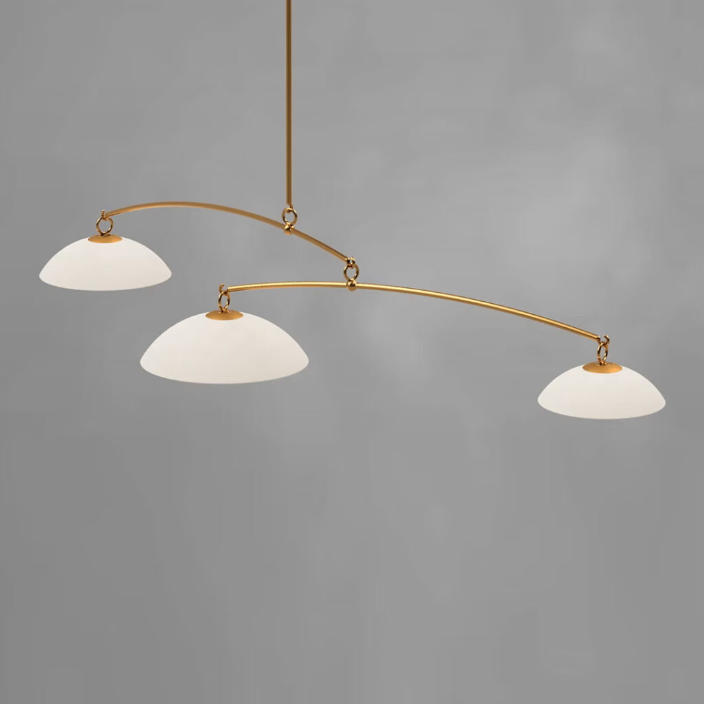 Handmade porcelain domes balance one another on a series of cascading, arched arms. These sculptures are an absolute joy to build - they start as a collection of disparate parts that, when perfectly balanced, achieve stability and scale that seem to defy physics. Each Mobile is custom designed by Ted Bradley to your specification. The sculptures can be made round or linear, with your chosen number of domes, sizes from 6 to 22-inches, and overall dimensions ranging from 3 to more than 12-feet.