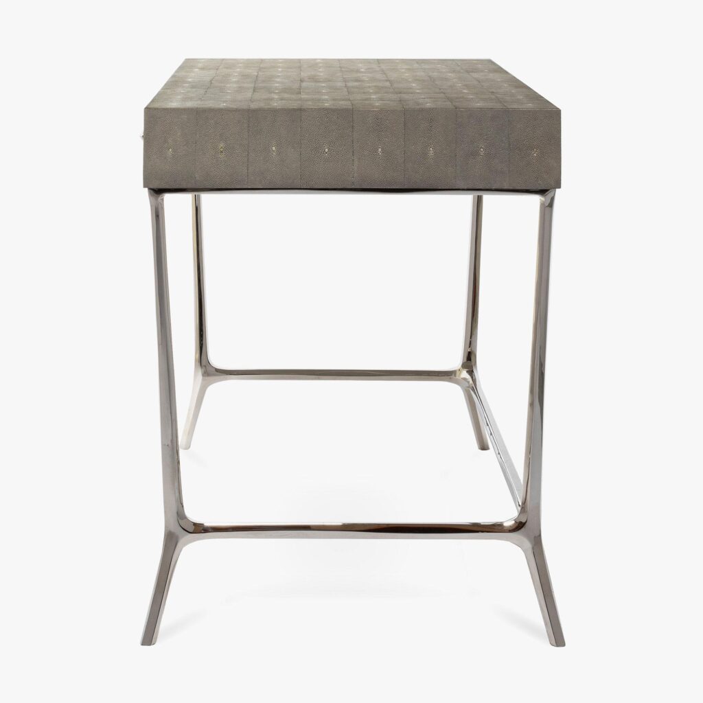 A desk piece with three drawers, cast brass base with hewn carved detail, available in a selection of finishes.