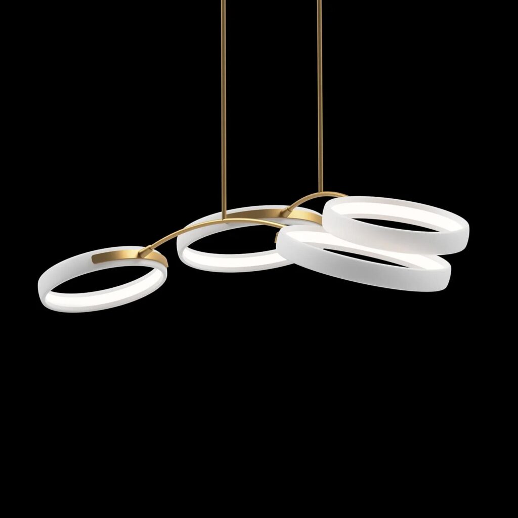 This Weighted Branch series of light sculptures is inspired by the branches of aspen trees weighed down by a winter snow. More than a thousand warm, dimmable LEDs are embedded on the inside of each ring