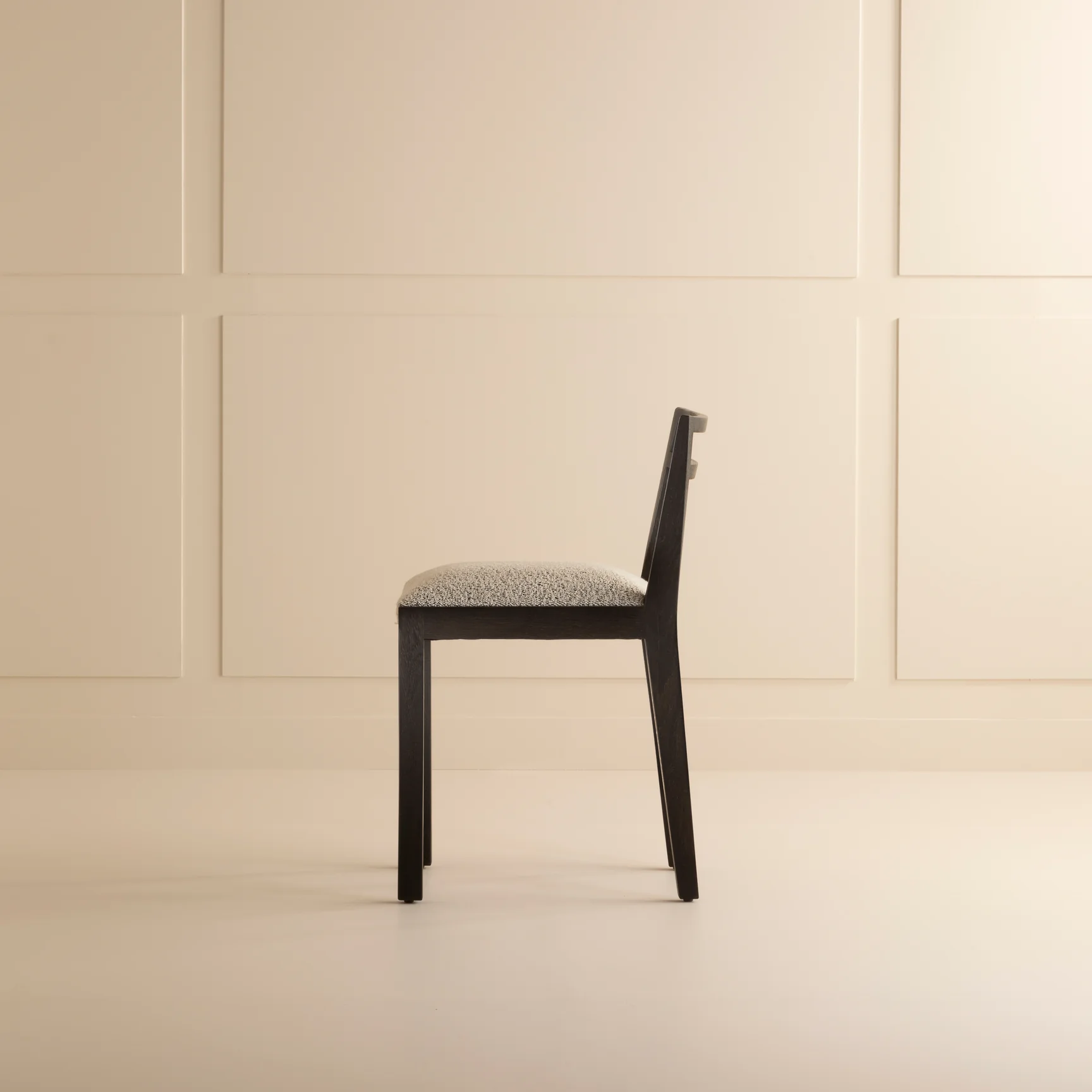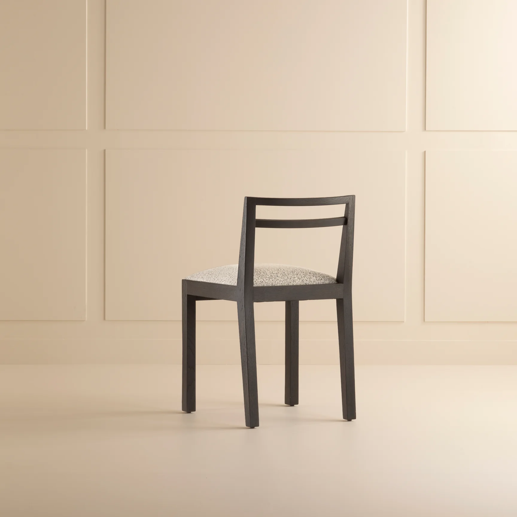 Jean-Michel Frank’s 1930 Chair, in varnished solid oak with fabric or leather upholstery, embodies his minimalist vision—clean, pared-down lines contrasting Art Deco opulence.