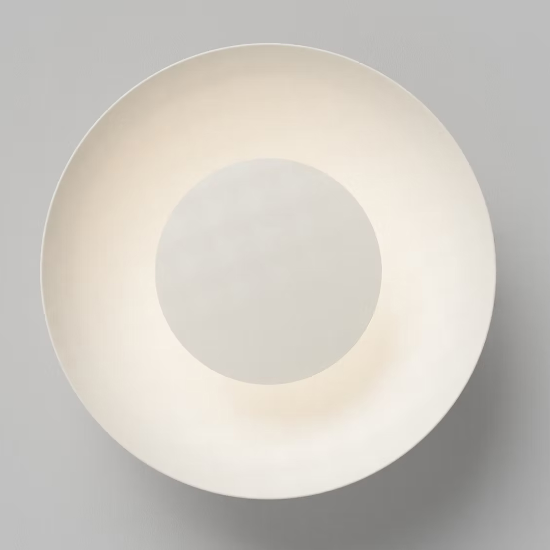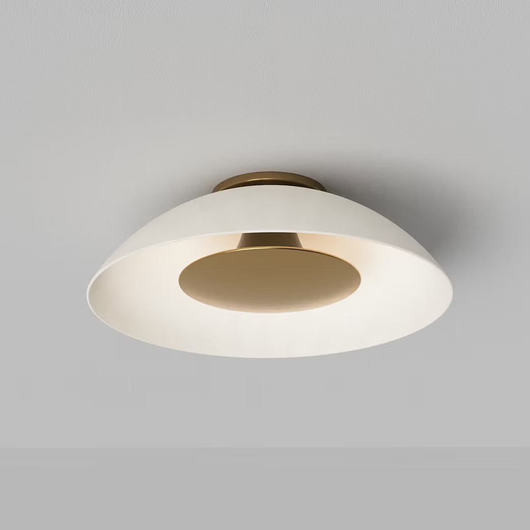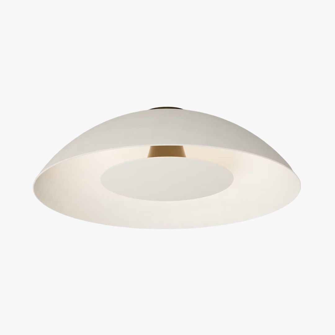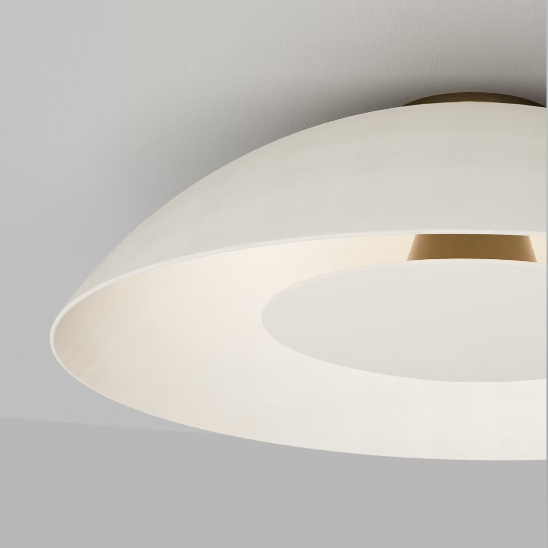 The Dome flushmount is available in four sizes from 12-inches to 22-inches diameter. The inner light "shield" can be specified as porcelain or metal, with the glaze colour or patina finish of your choice. Sets shown connected by finely braided metal cording require just one junction box.