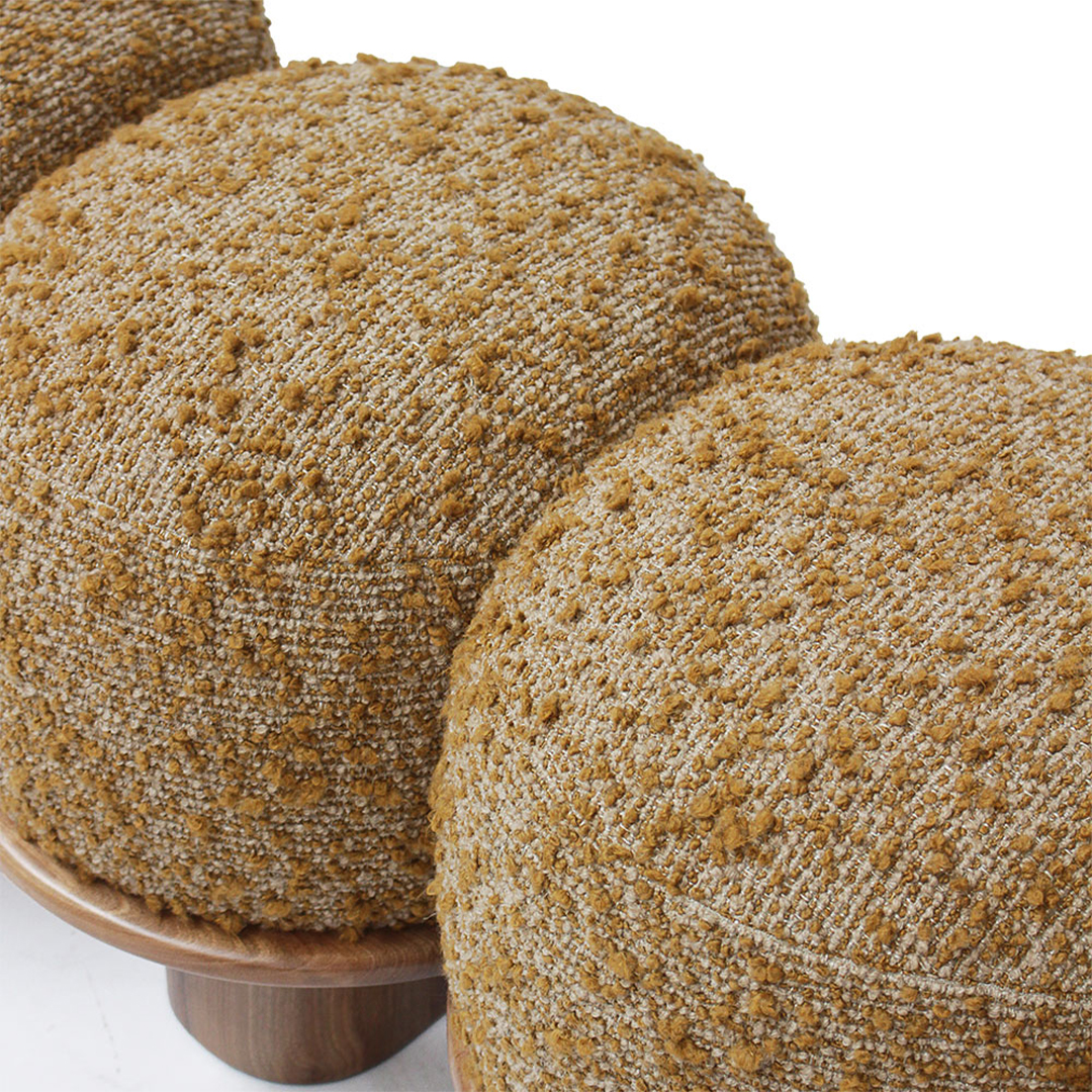 Structure in Solid Oak wood. Upholstered in Boucle Wave Surface Collection Tabbaco. Legs: Wood