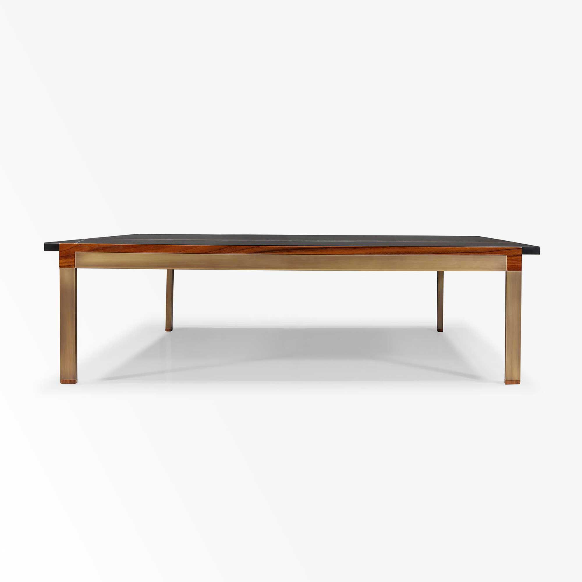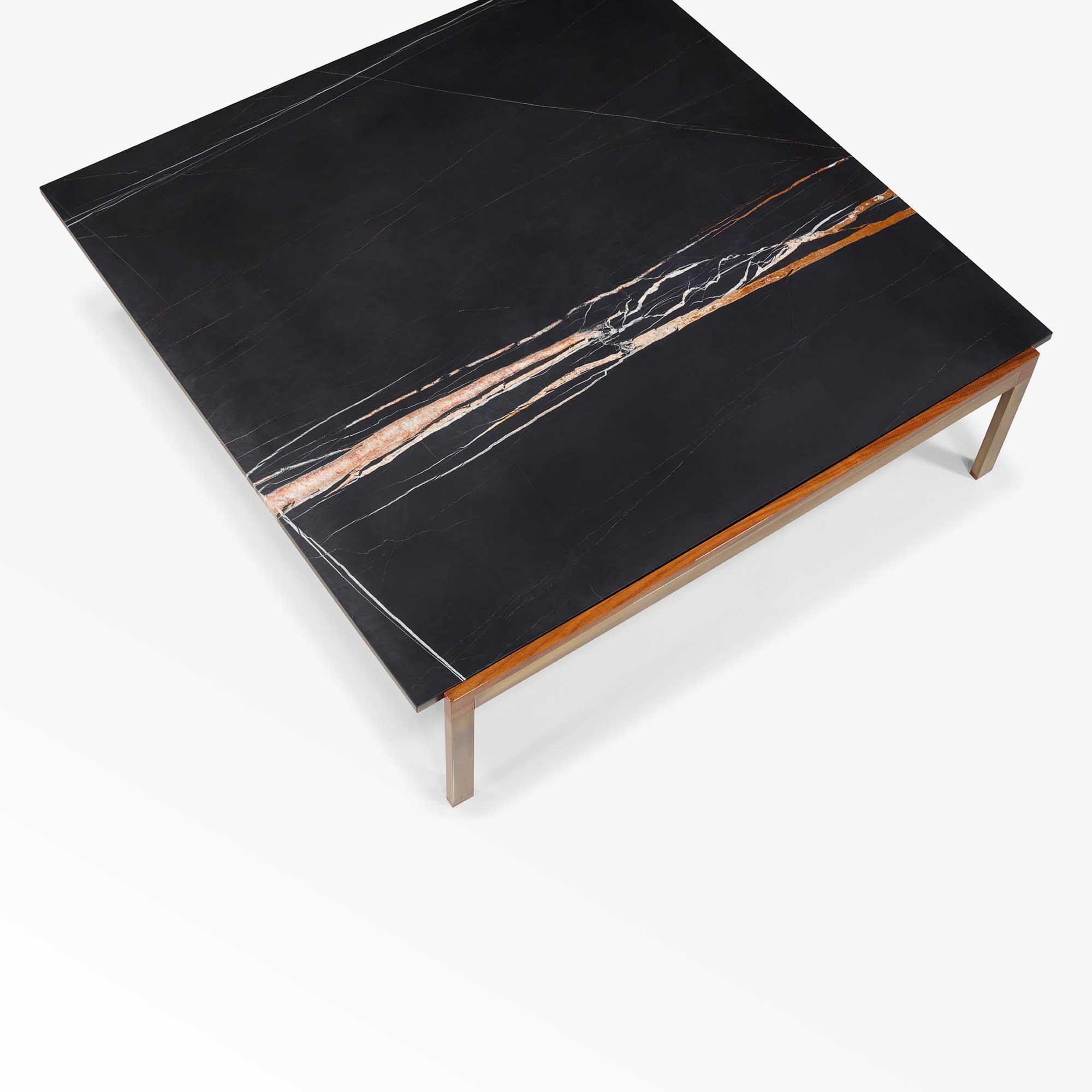 Ipa Coffee Table by Jean-Pierre Tortil—an elegant mix of marble and wood on a sleek metal frame, offering refined geometry for modern interiors.