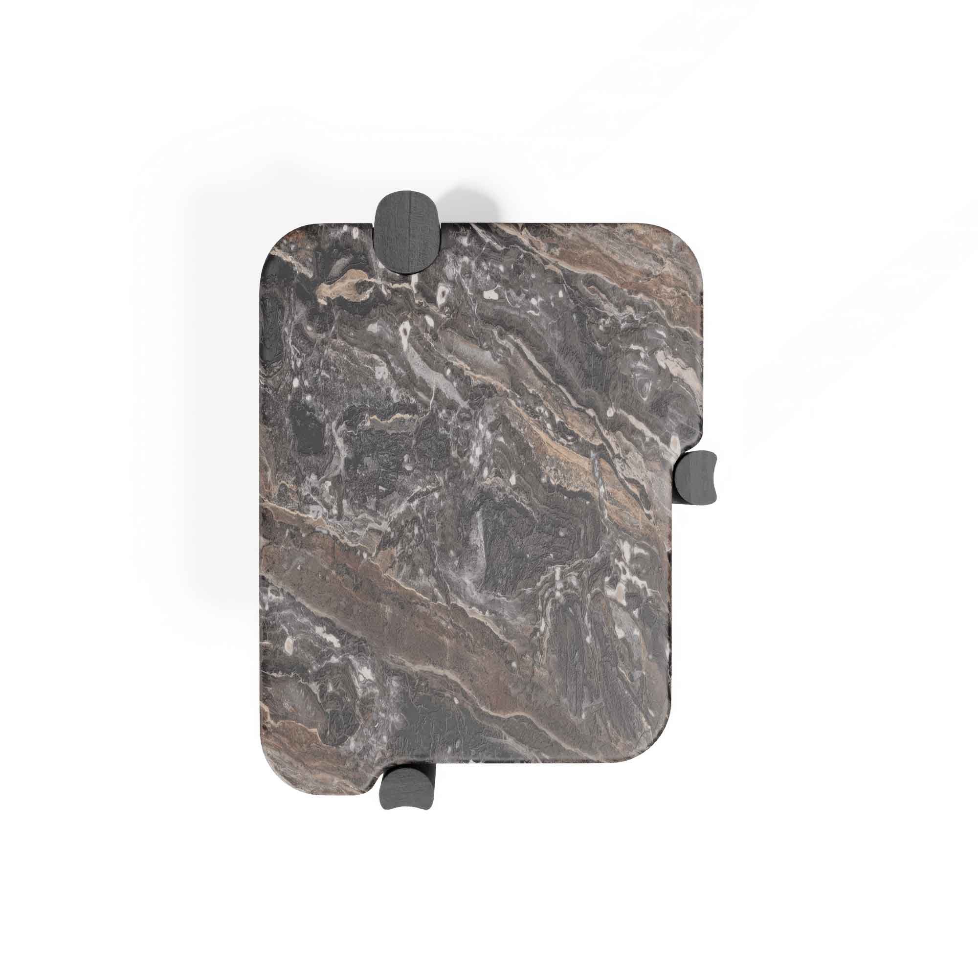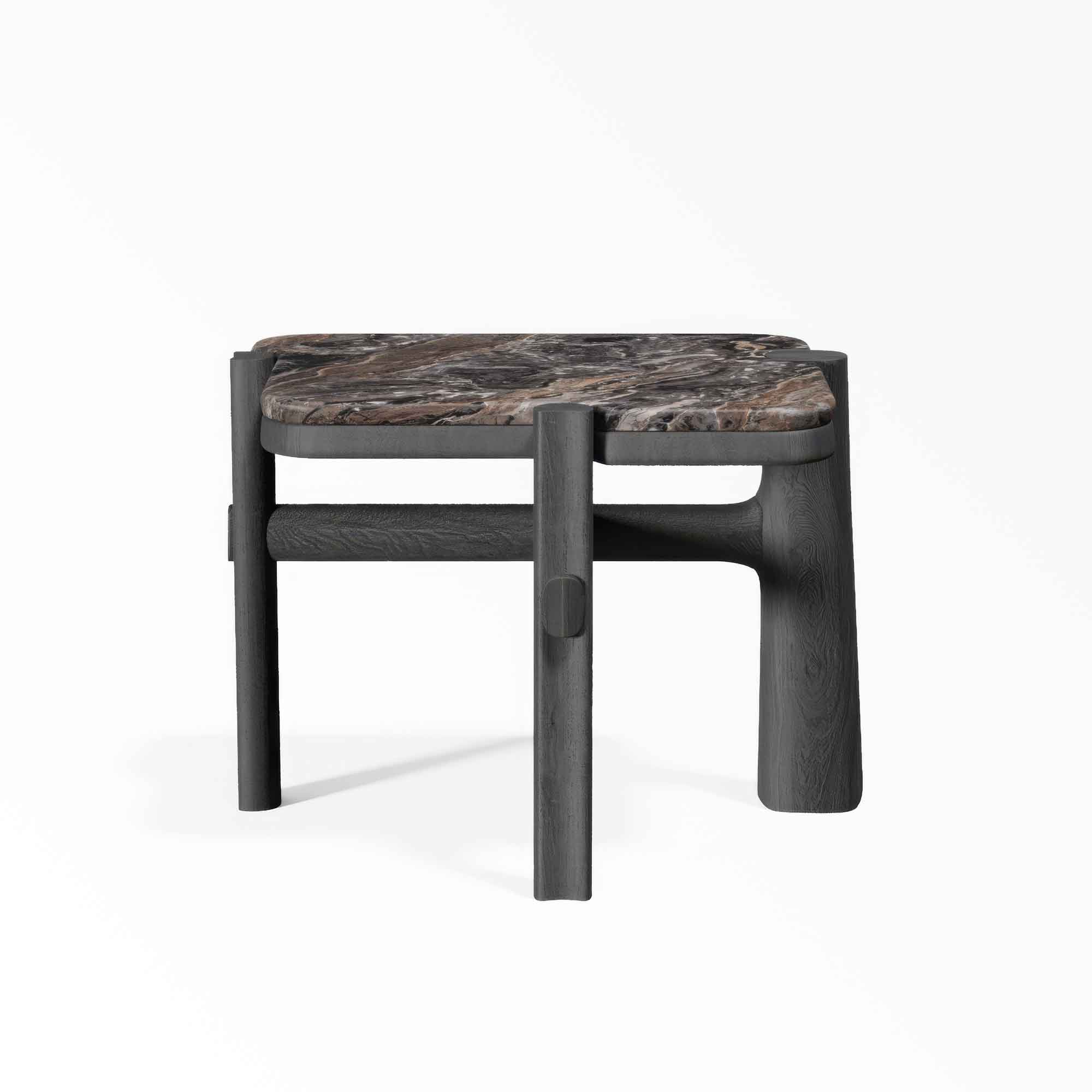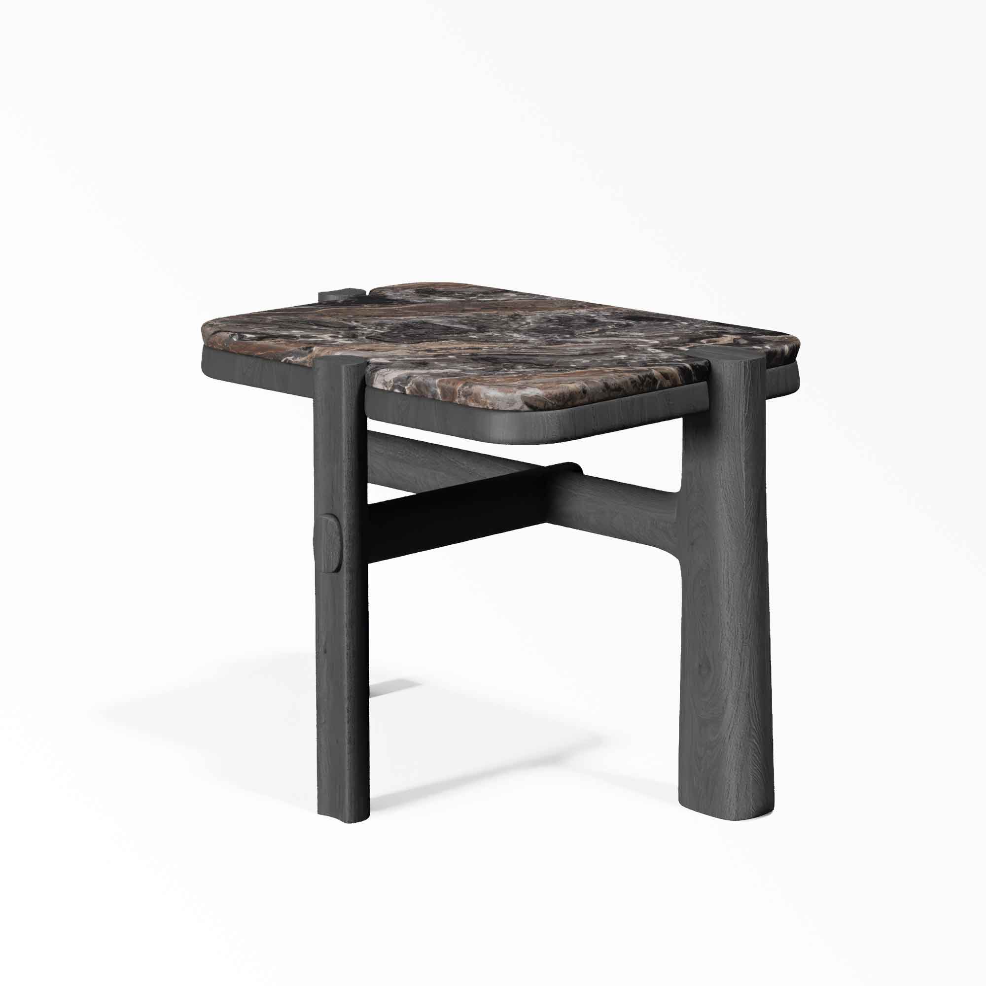 Lita Travertine Side Table by Atelier Tortil—solid chestnut wood with a honed marble top. A refined, modern accent piece for any interior.