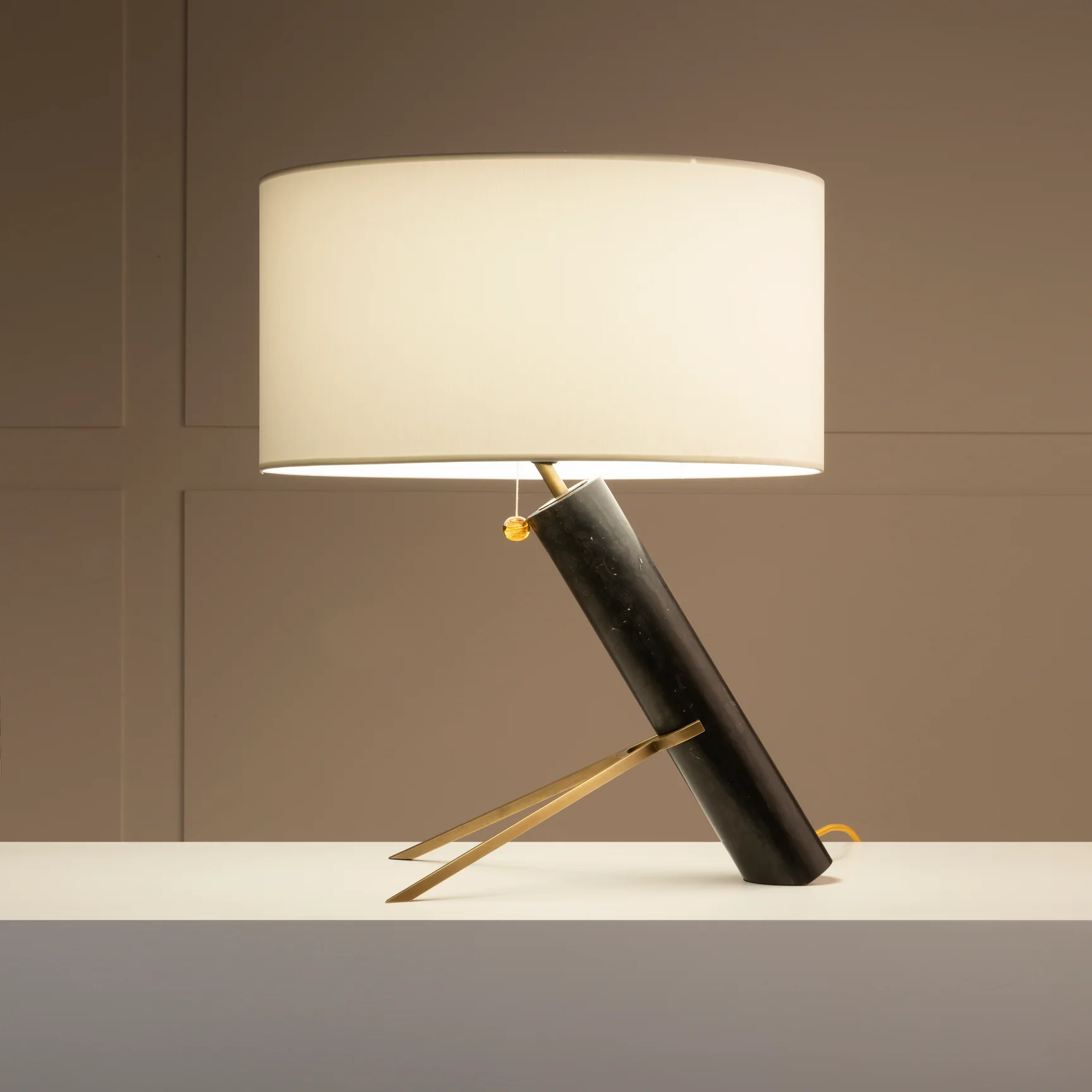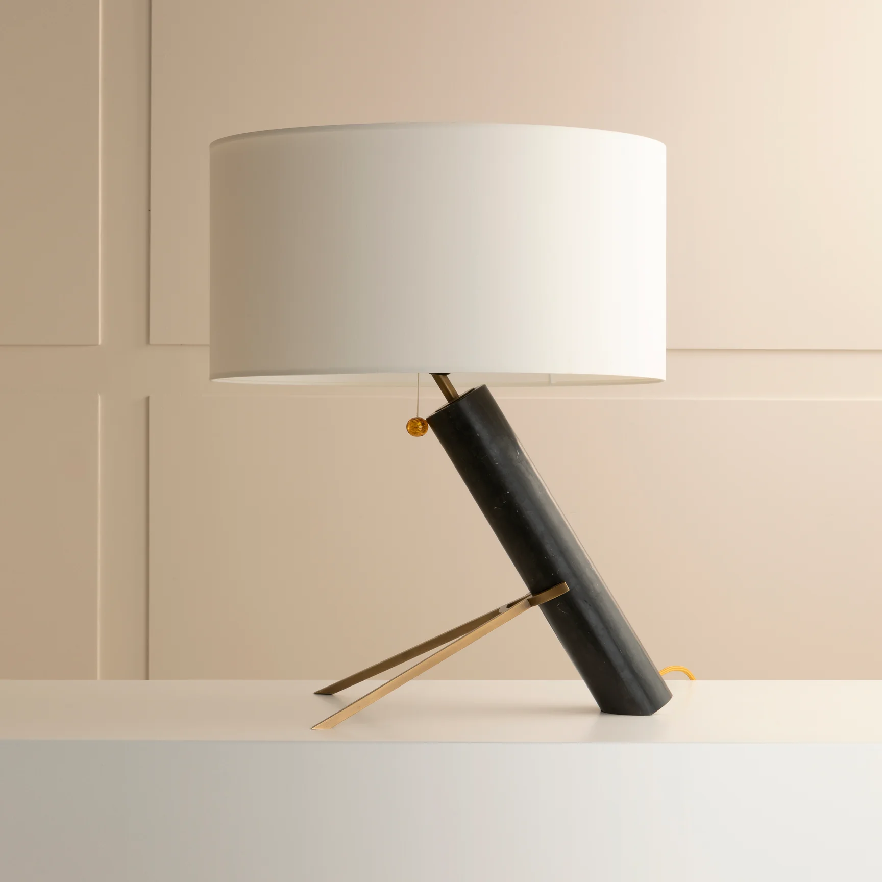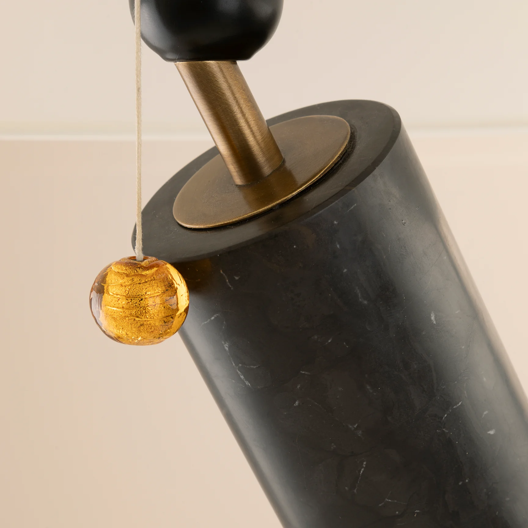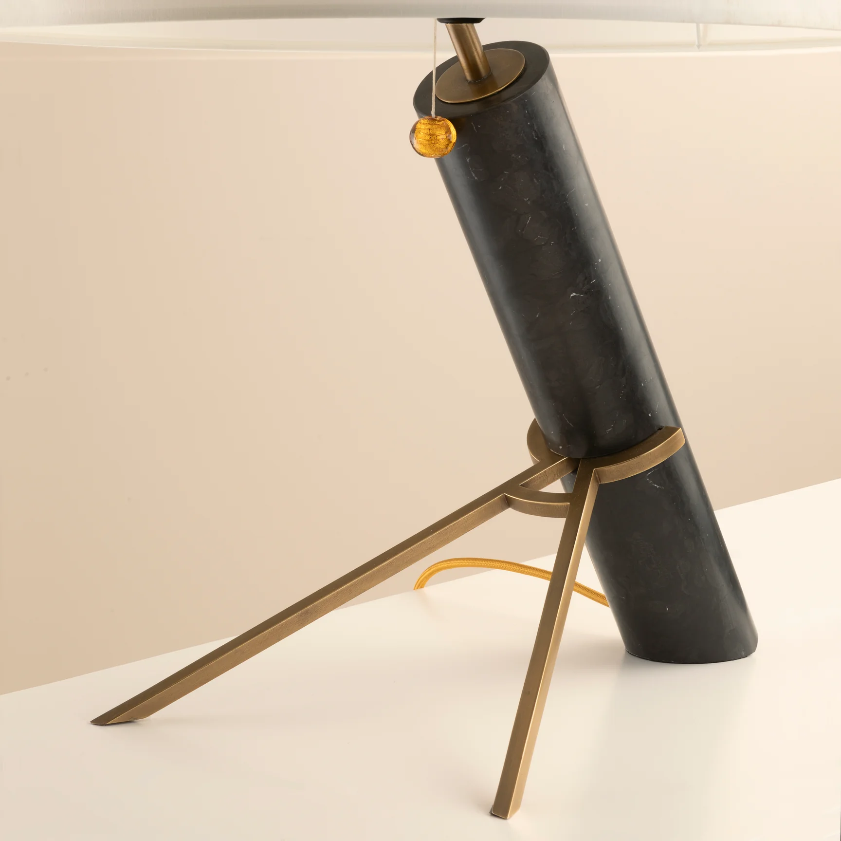Bruno Moinard’s Londres Lamp, c.2013, pairs patinated brass, Blackwood marble, Murano glass, and cotton for a minimalist design defined by balance and refinement.