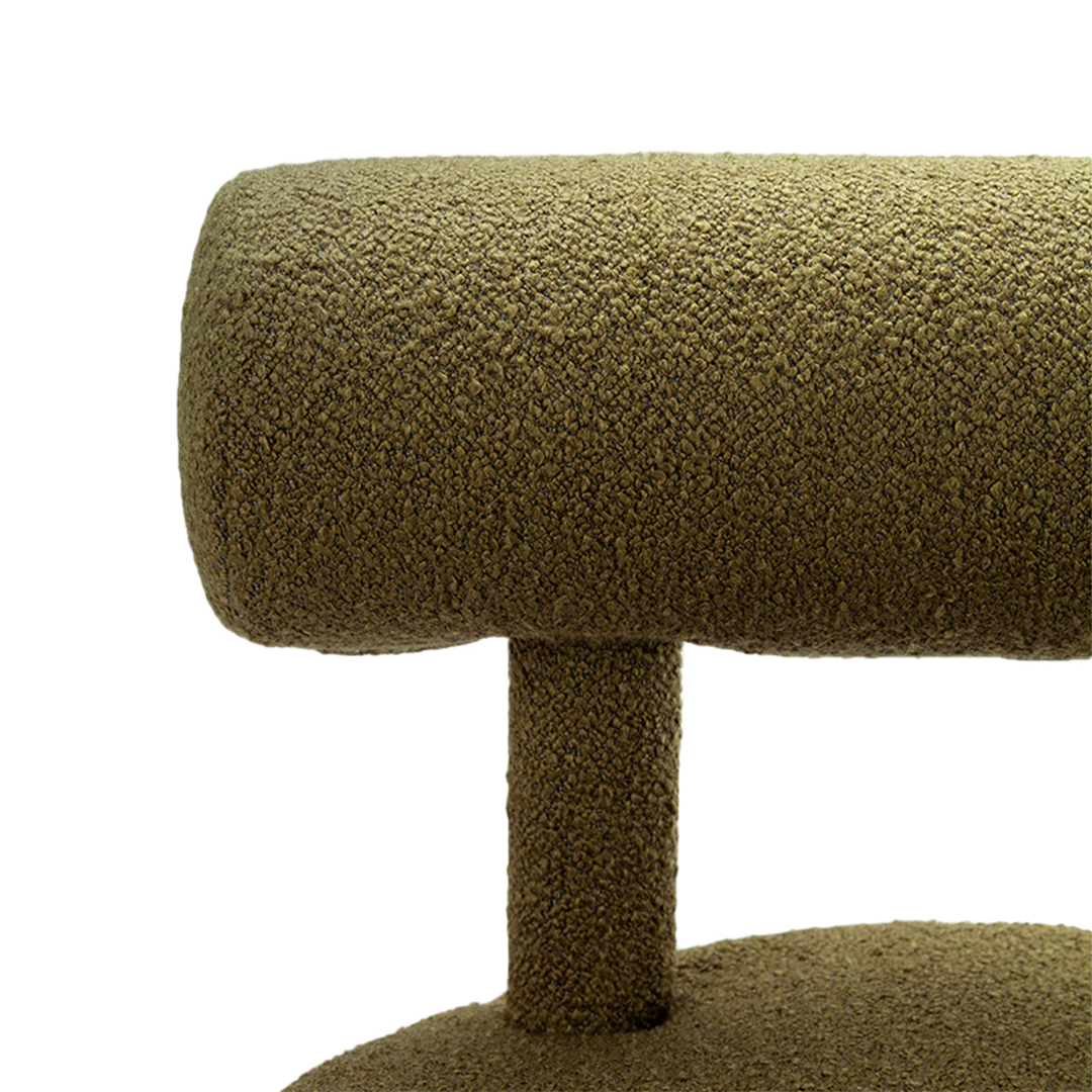 Solid oak wood structure. Upholstered in Boucle forest fabric.