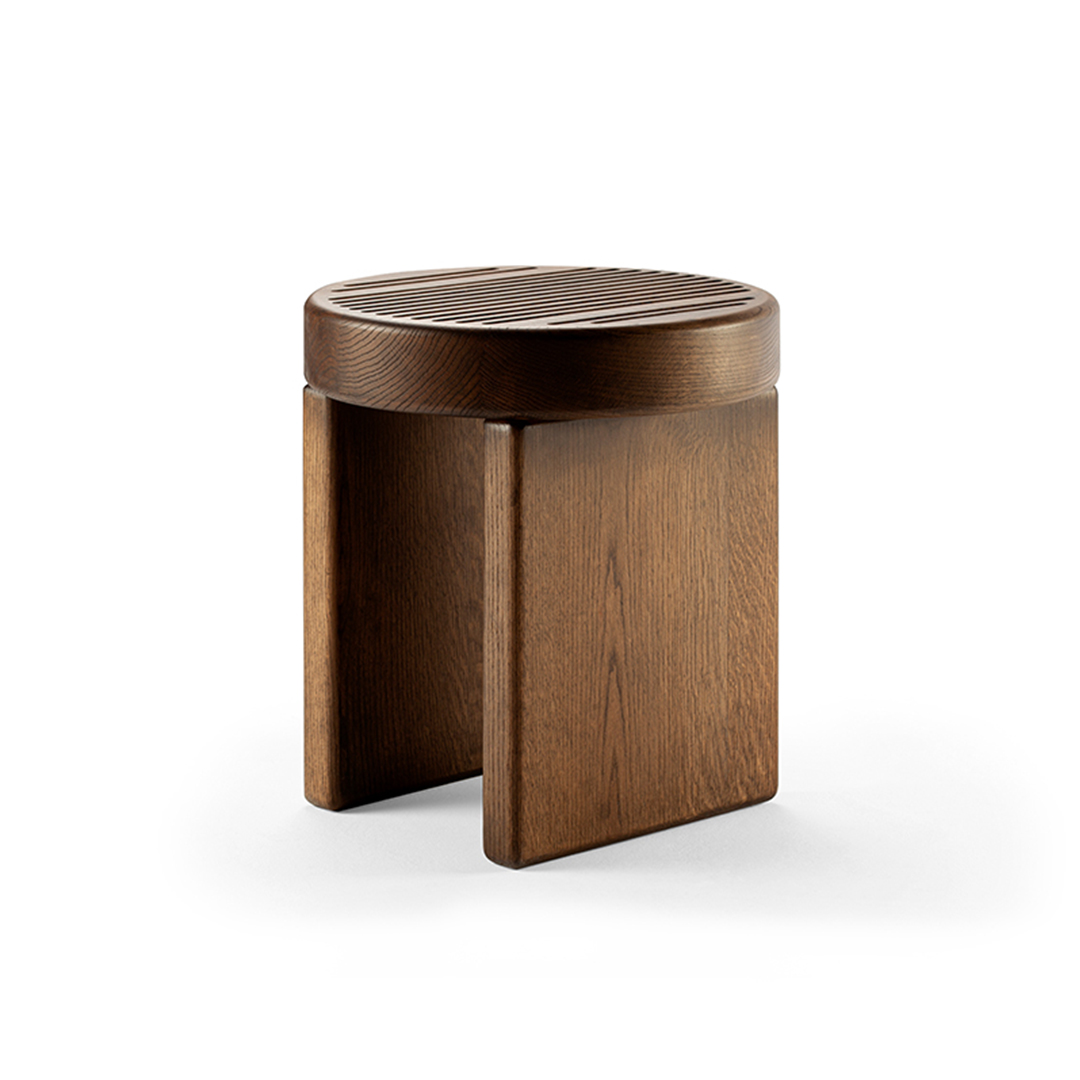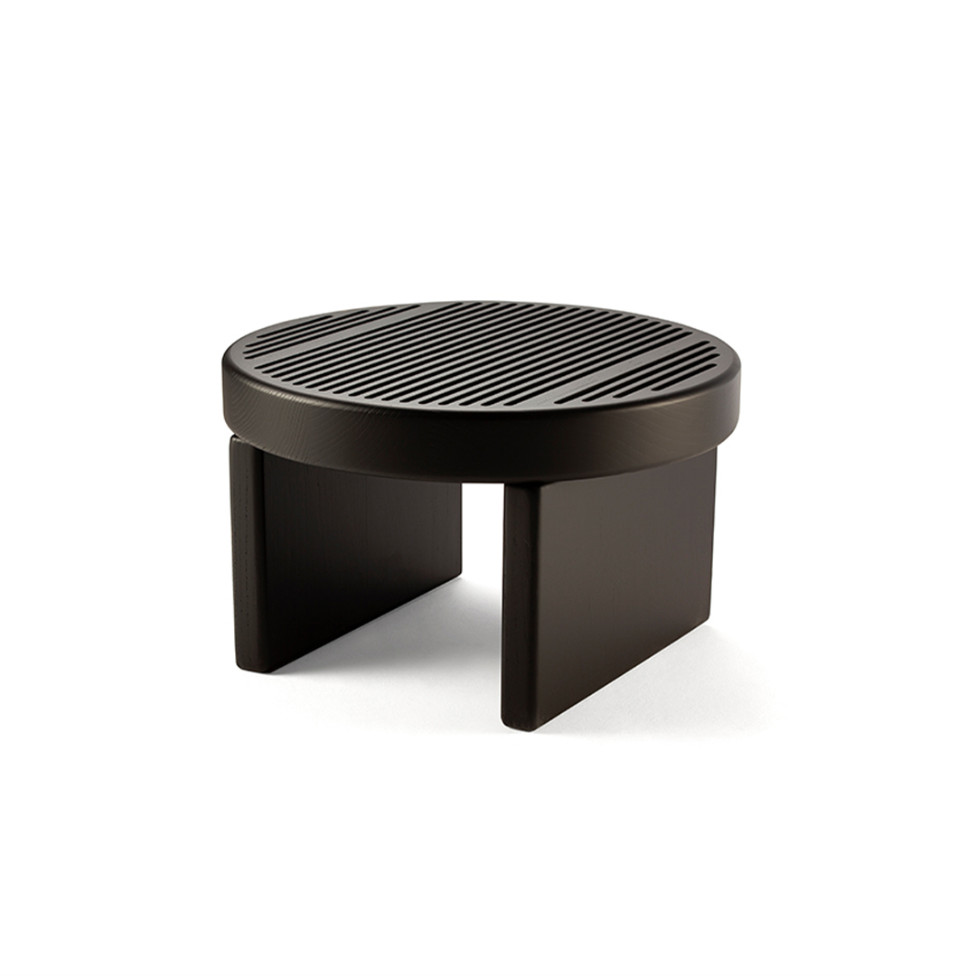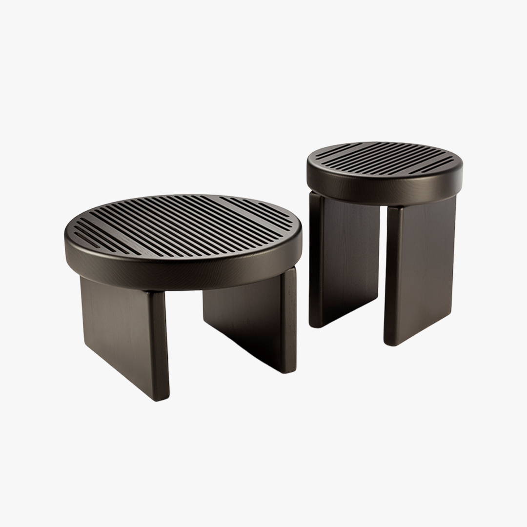 CollectorThe Rillos Side Table in solid wood features pure geometric shapes and a sliced top with flowing surfaces. Available in two heights, it’s a versatile accent for sofas or armchairs.