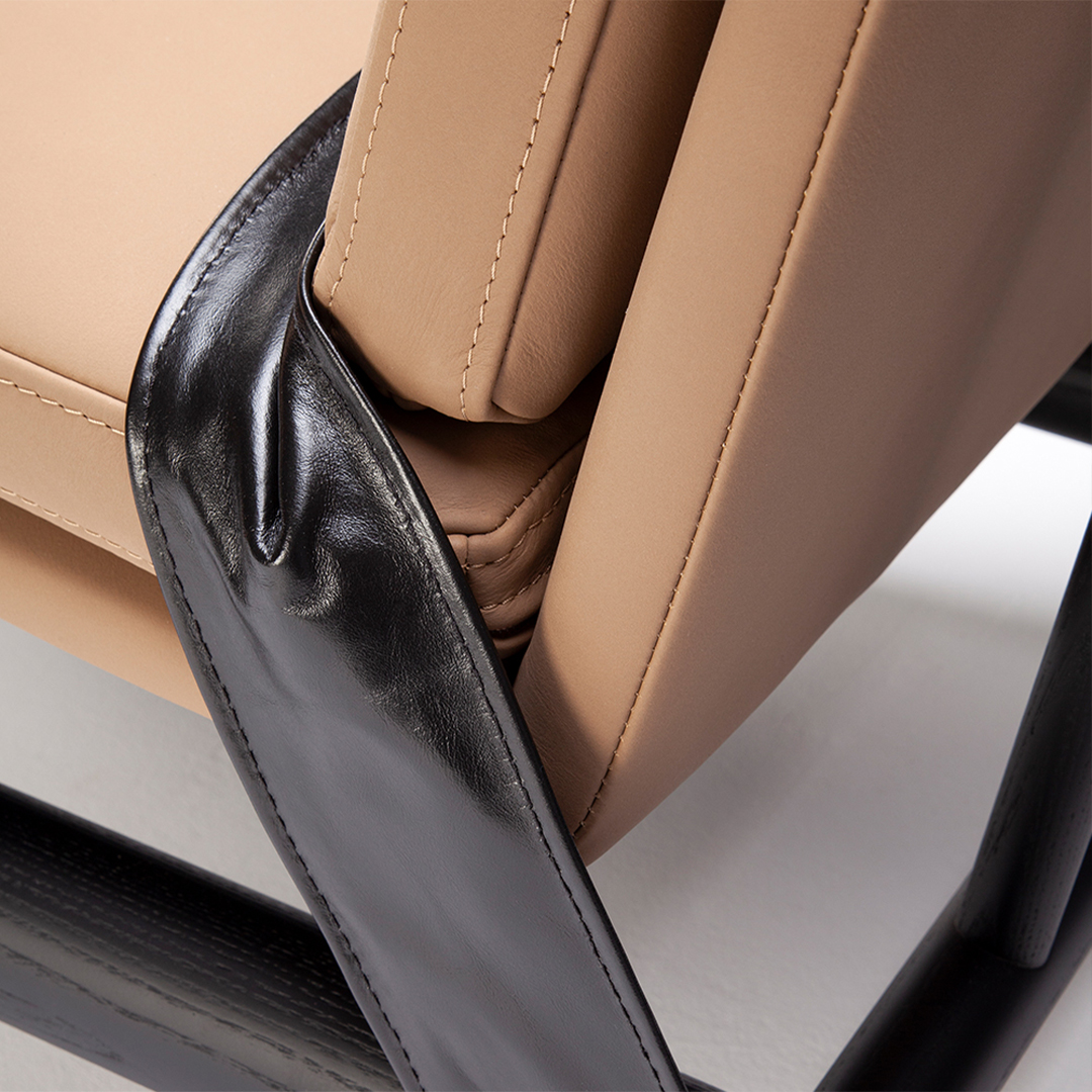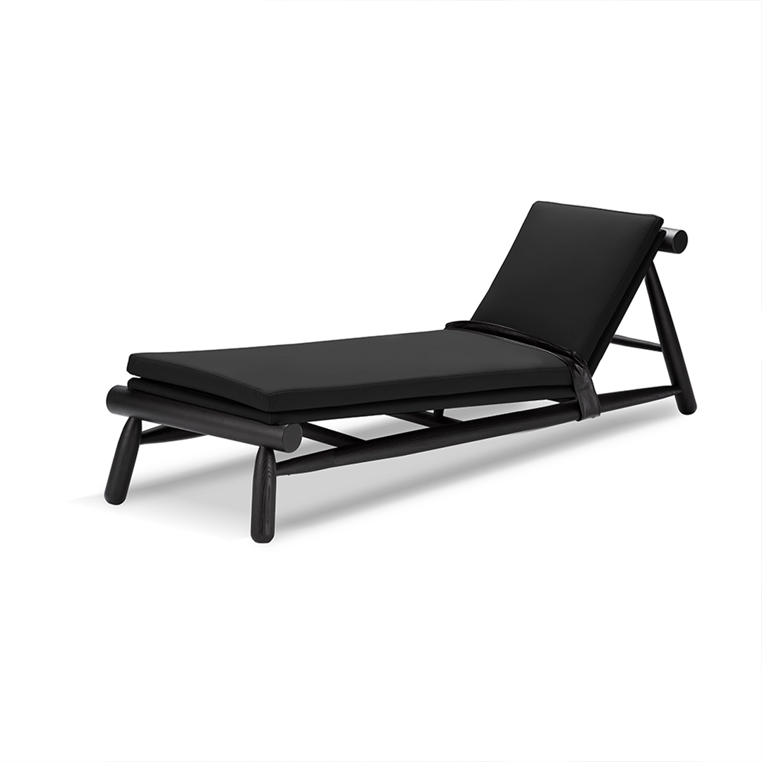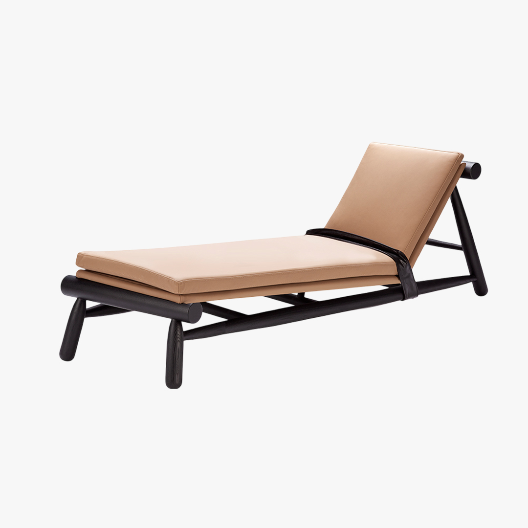 CollectorThe Seso Daybed by Davide Monopoli combines materials in elegant tension—a soft cushion secured by a leather strap over a sleek frame, balancing comfort and sensual design.