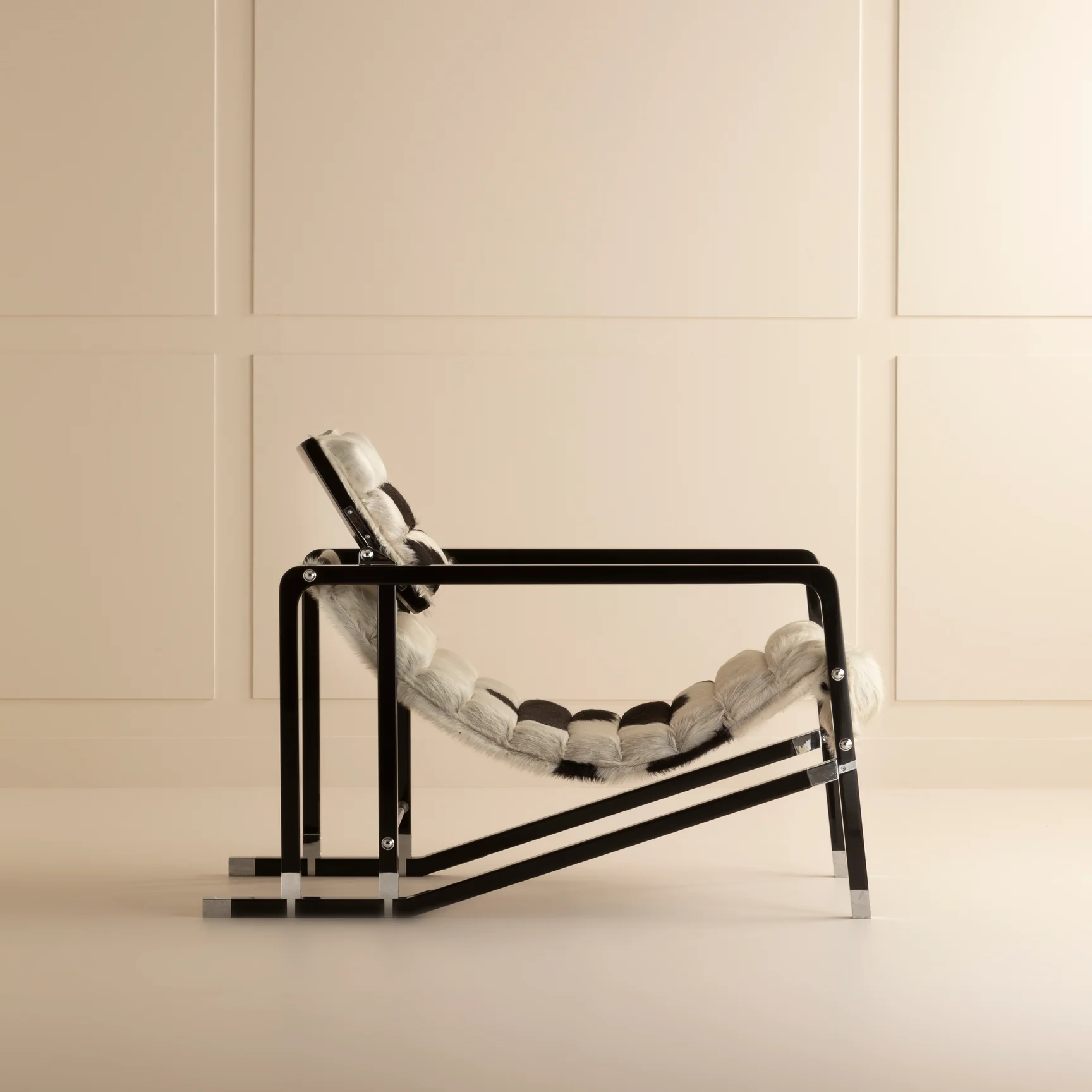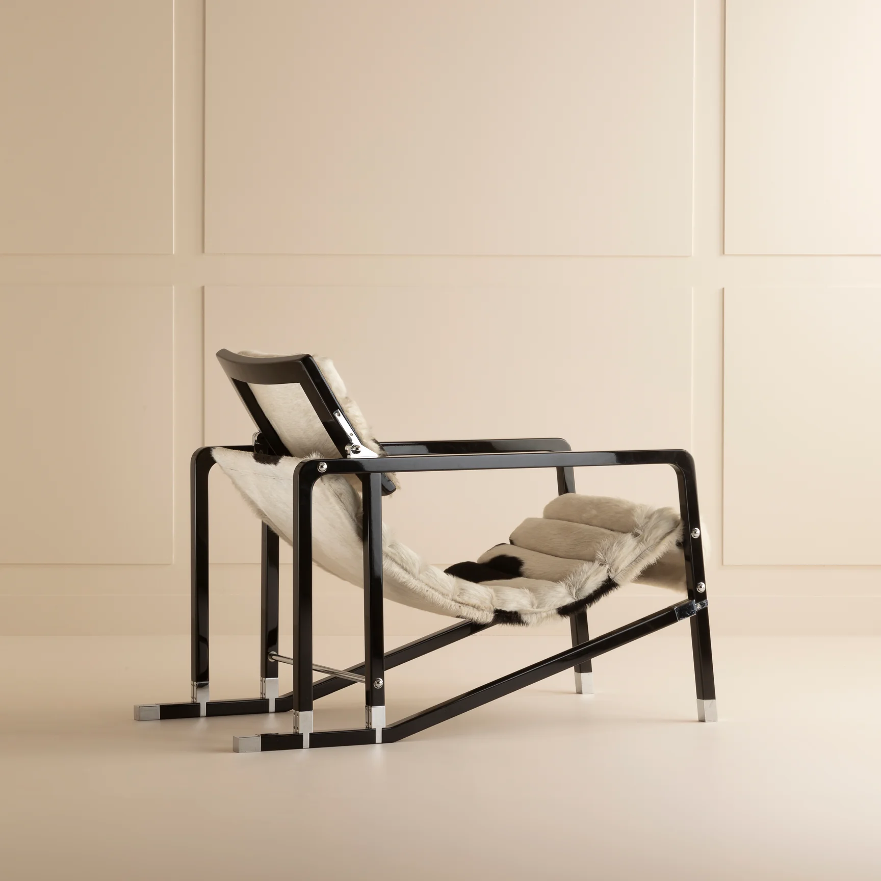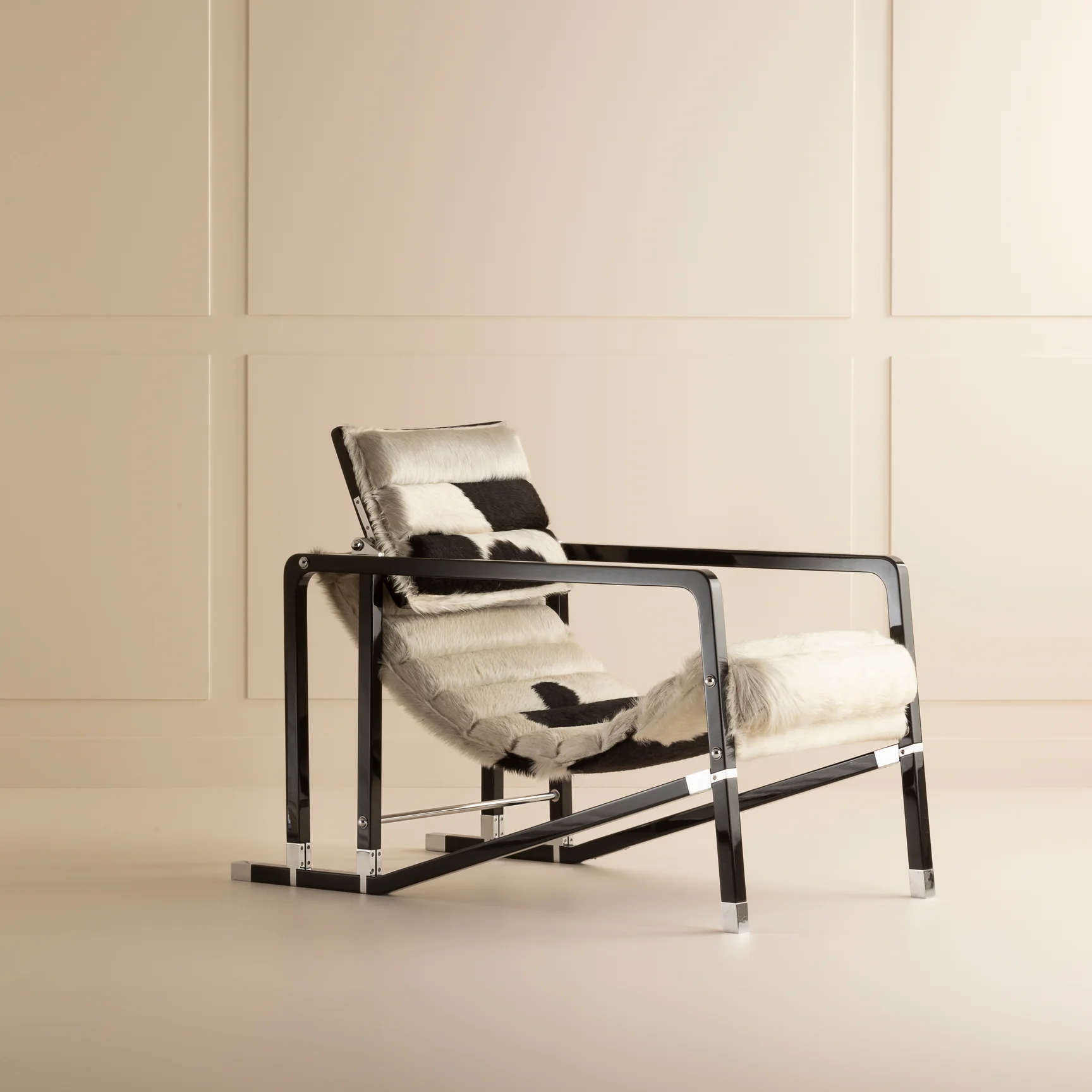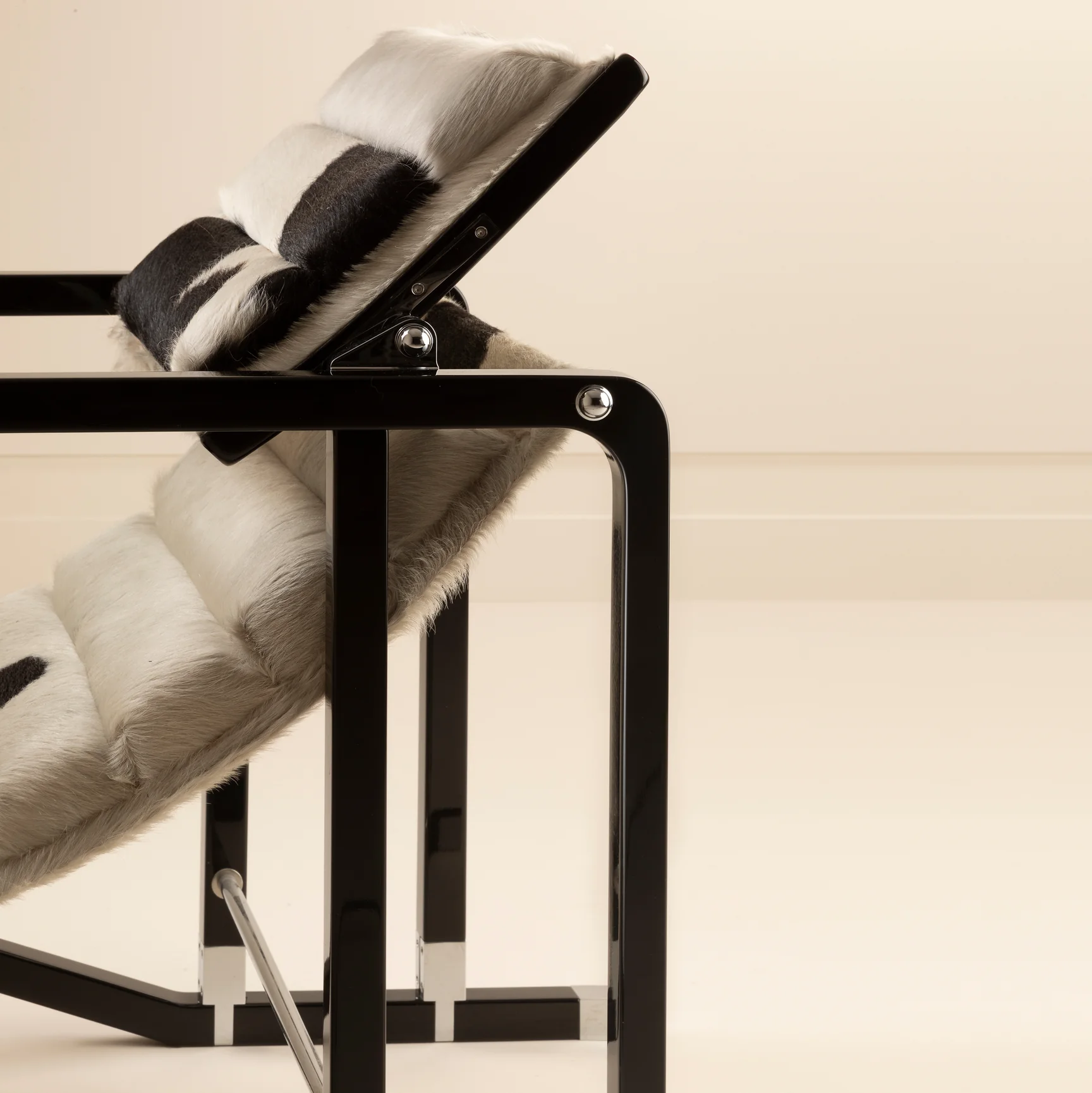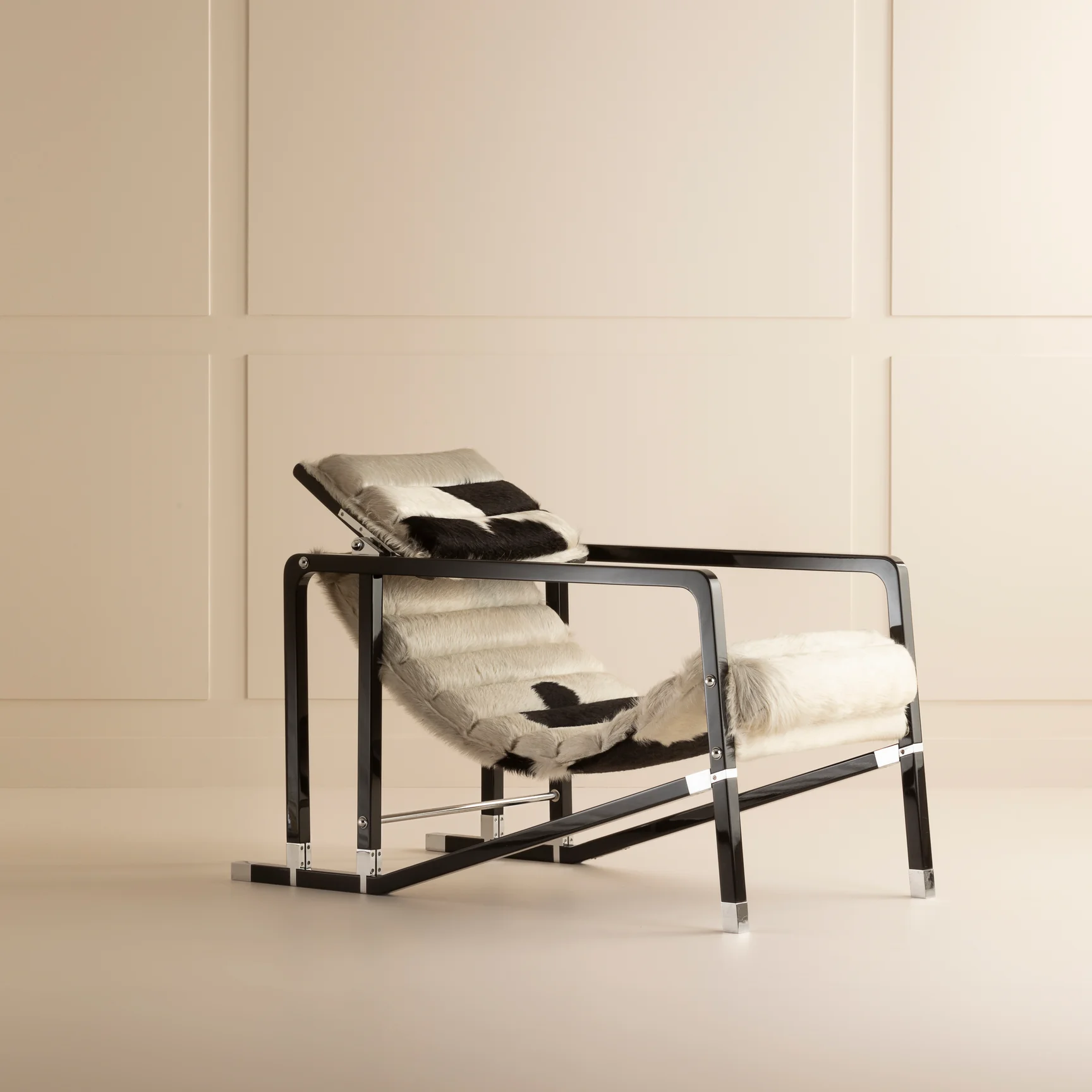 Lacquered sycamore & hide, leather or fabric. Between 1926 and 1928, Eileen Gray collaborated with Jean Badovici on the creation of an architectural masterpiece: the Villa E-1027 in Roquebrune-Cap-Martin. For this project, she designed all the furniture, including the iconic Transat, created c. 1927. Its name refers to the abbreviation of “transatlantique”, evoking the deck chairs of ocean liners.