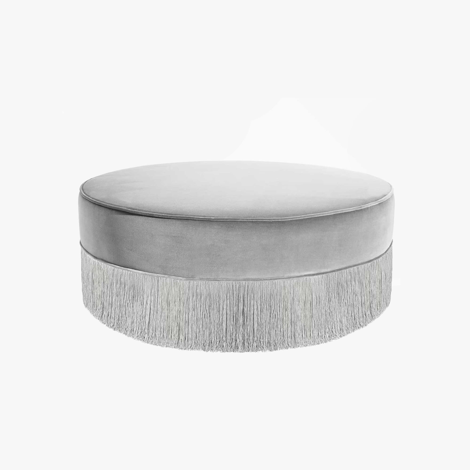 Sparkle Gray with Silver Fringe Ottoman