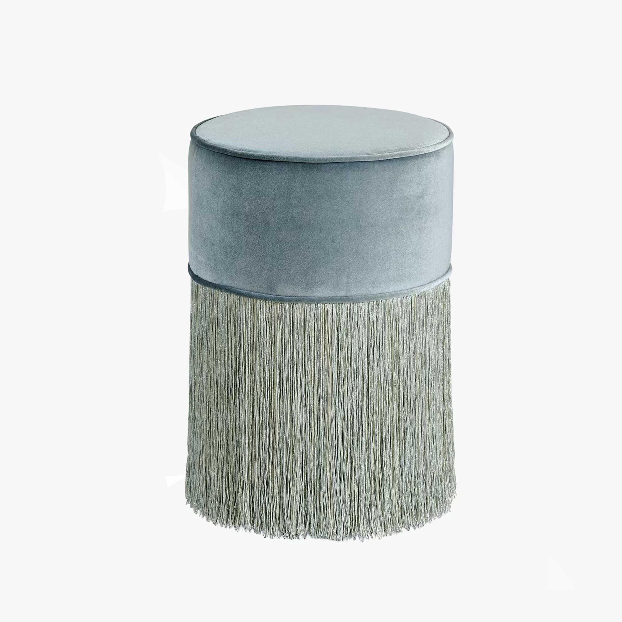 Sparkle Light Blue with Fringe Pouf