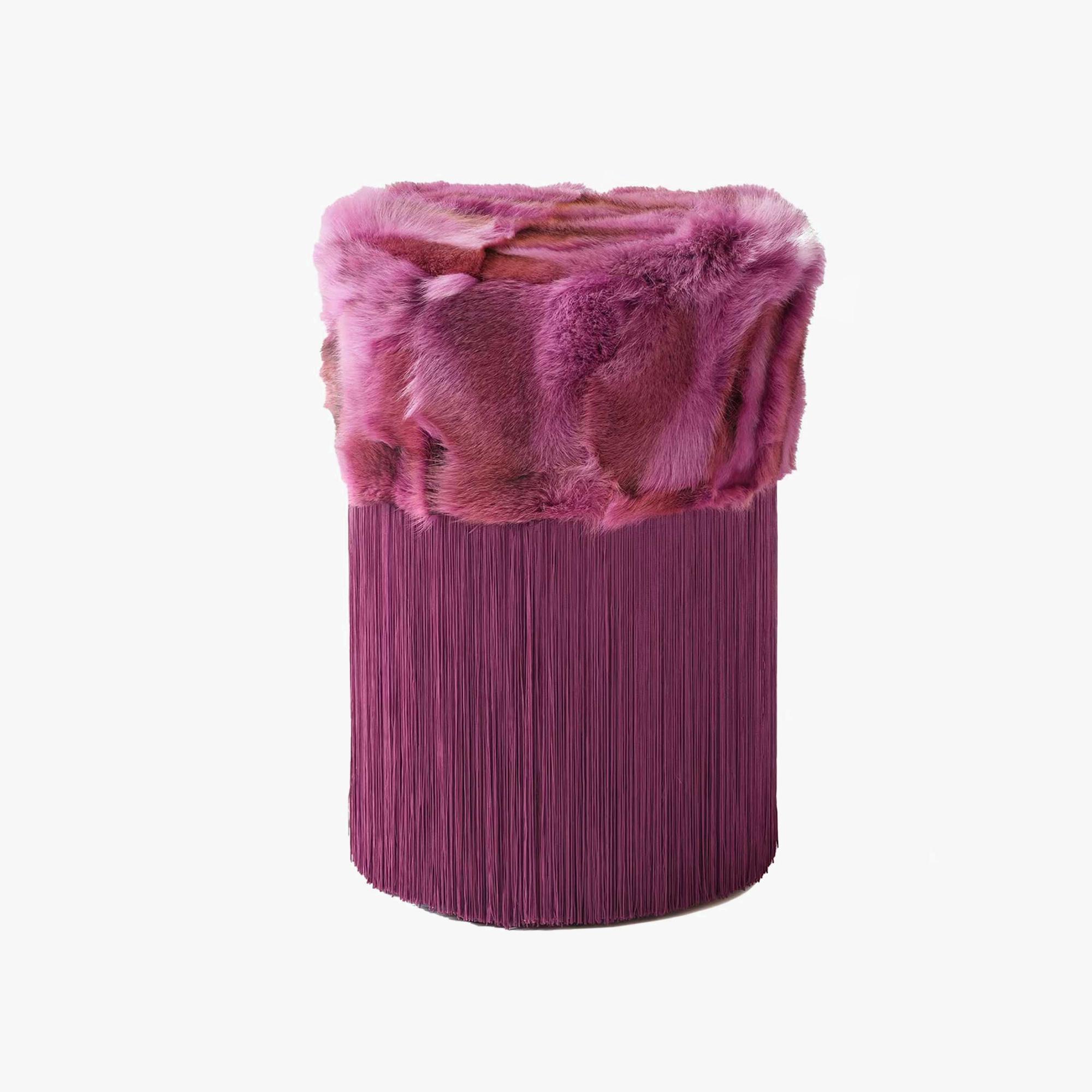 Fuchsia Fur Ottoman 30